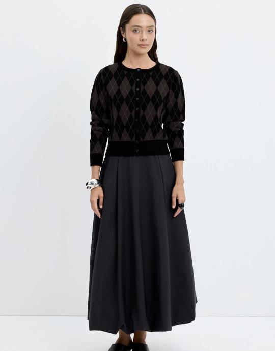 Kemerli uzun çan elbise siyah, sonbahar ve kış sezonunda rahatlıkla tercih edilebilecek, zamansız ve modern duruşuyla her ortamda şıklığı tamamlar. İster ceketlerle kombinleyin, ister iç mekanlarda tek başına kullanın; kemer detayı stilinize zarif bir dokunuş katacak. Gardırobun vazgeçilmezlerinden olacak bu parça, rahat kesimi ve şık görünümüyle göz doldurur.