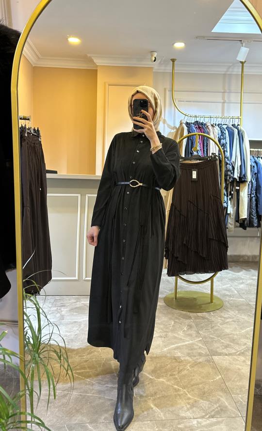BASIC UZUN KOLLU BAMBU ELBİSE Siyah