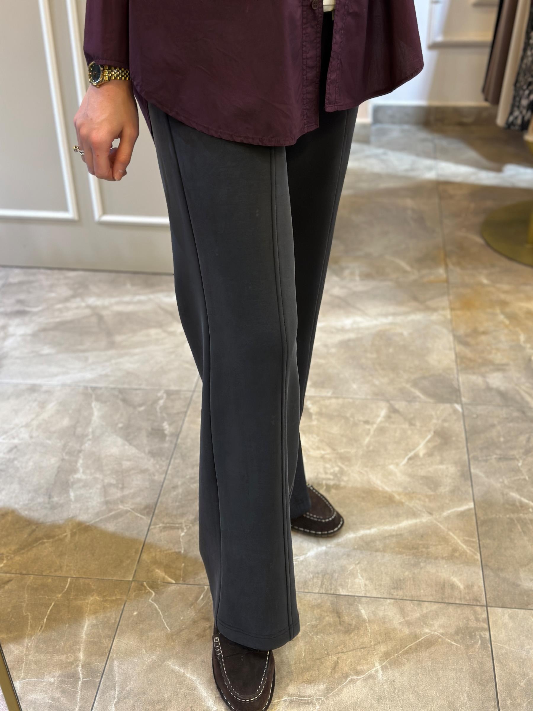 SENTEZ Doha Yanı Nervürlü Pantolon Siyah