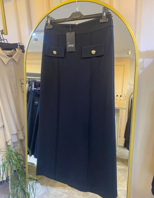 SENTEZ ROZİE YANI FERMUARLI KİLOŞ ETEK Siyah