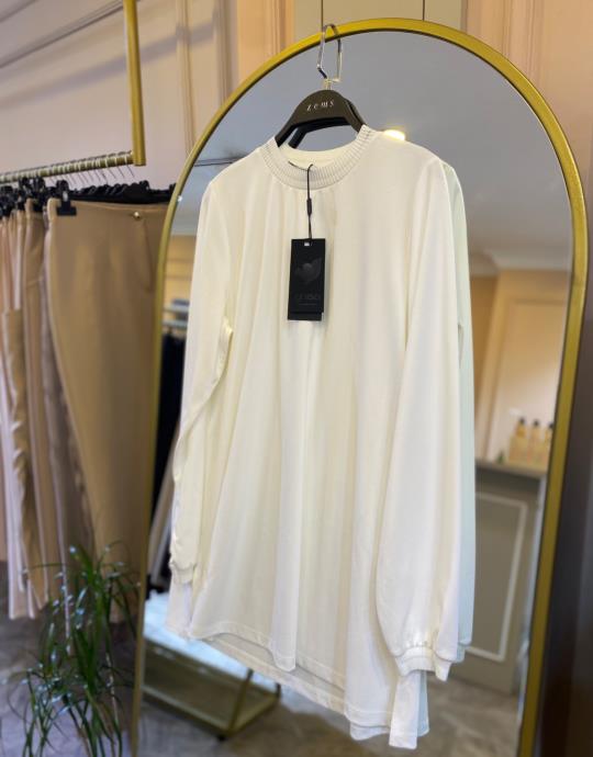 GHİSA UZUN KOL YAKASI VE BİLEKLERİ SİM DETAYLI İÇLİK TUNİK Beyaz