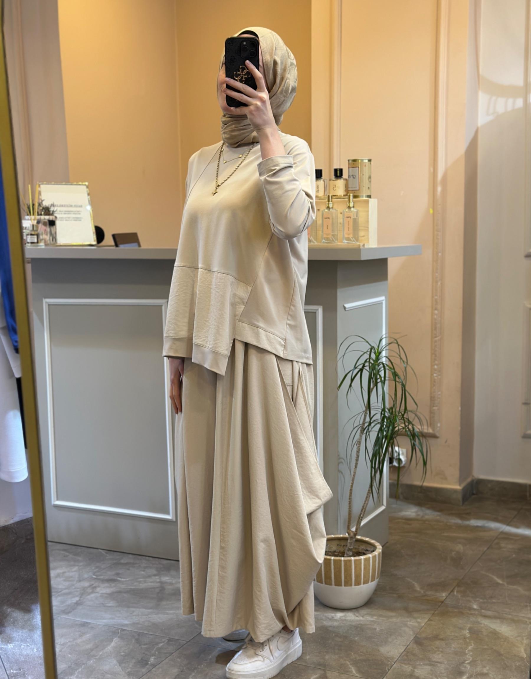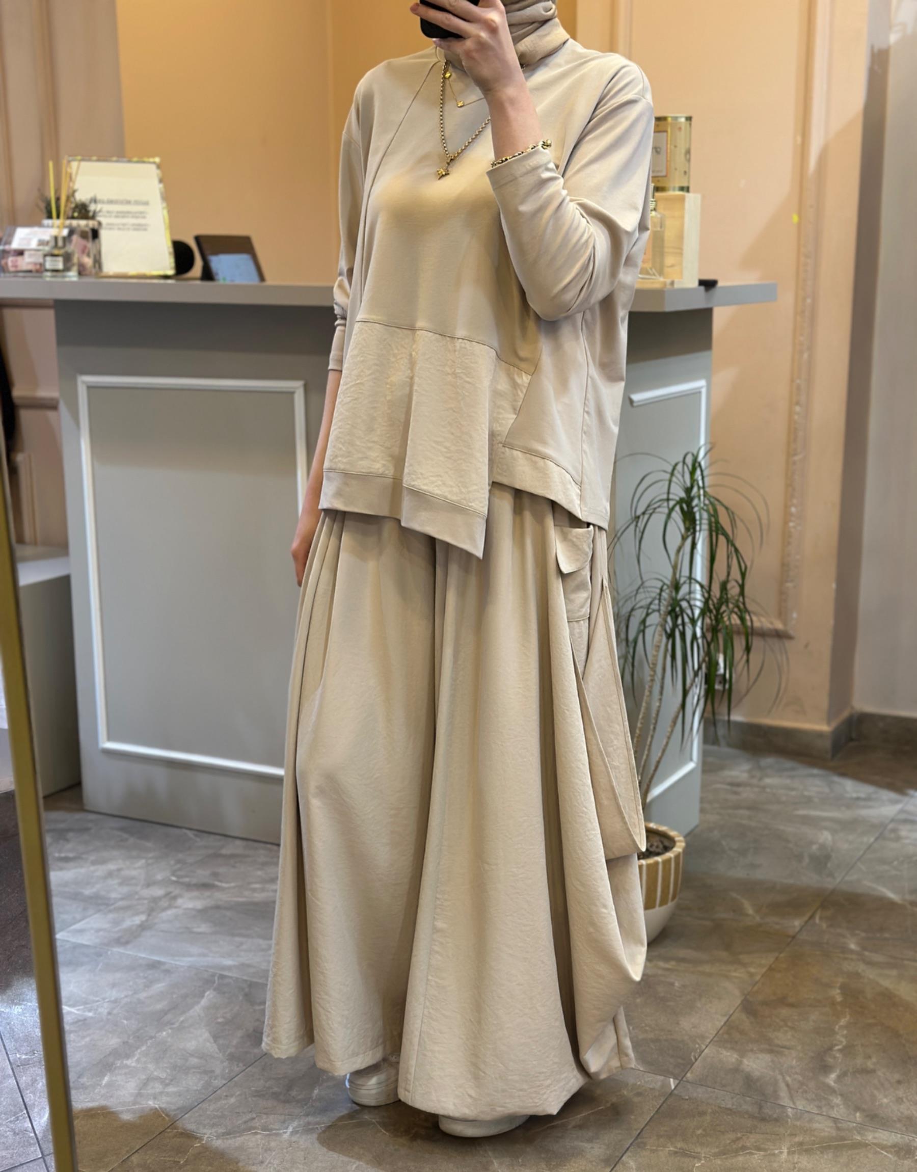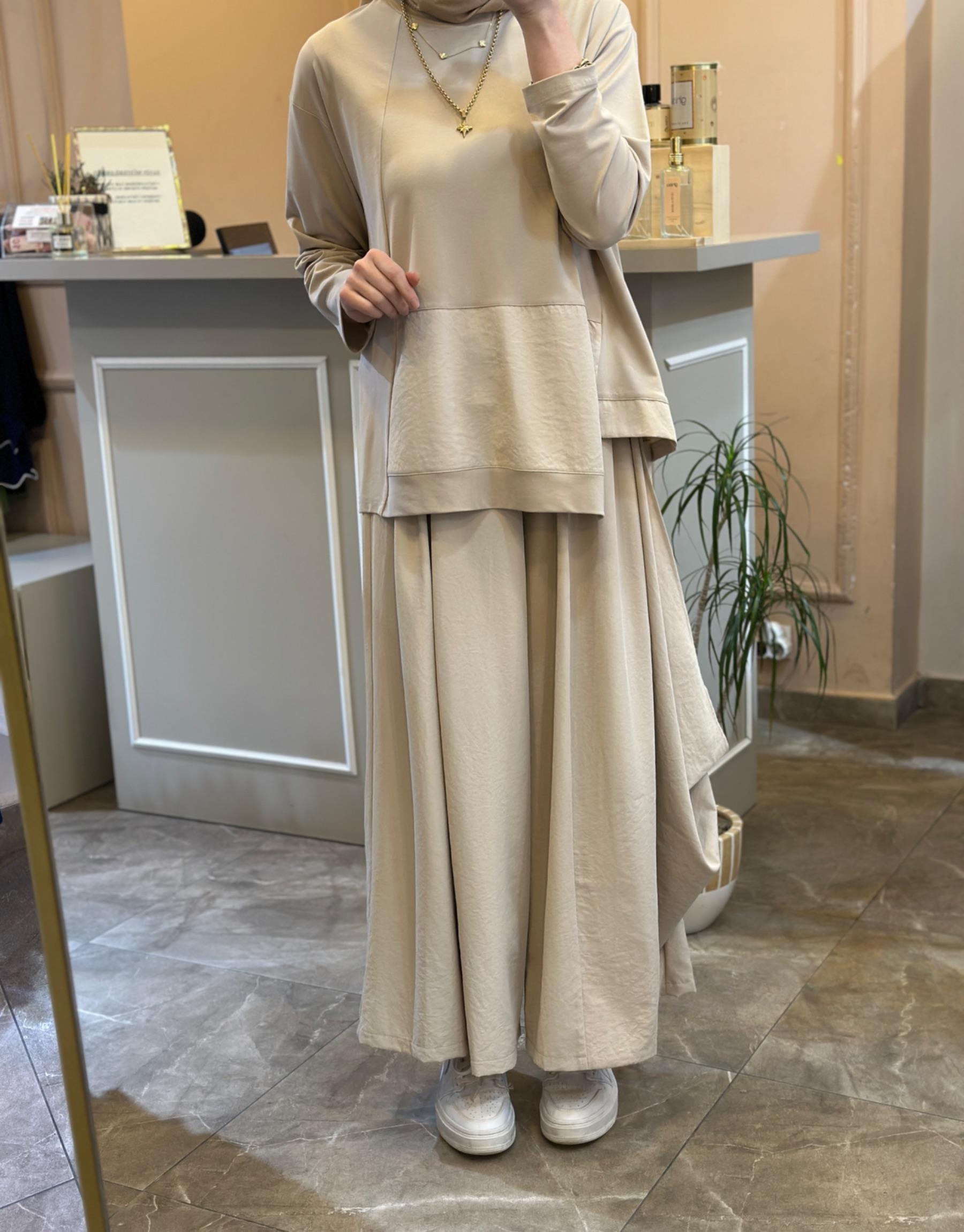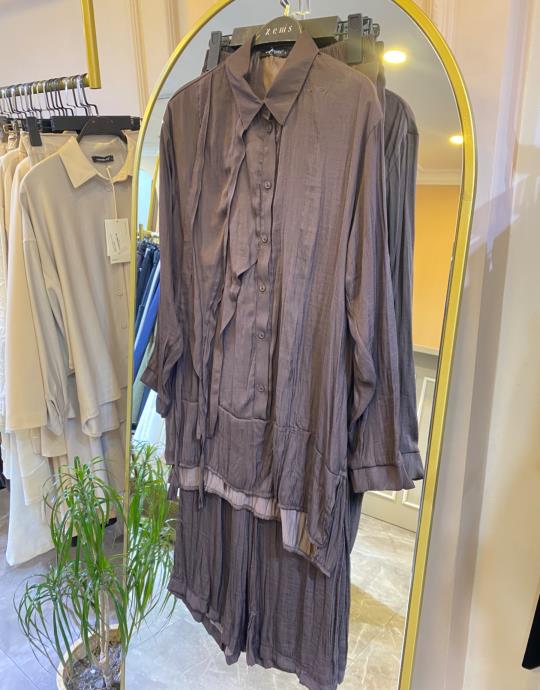 GHİSA Tuniği Düğme Detaylı Liosel Takım Kahve