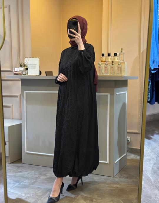 GHİSA BONCUK İŞLEMELİ ELBİSE Siyah