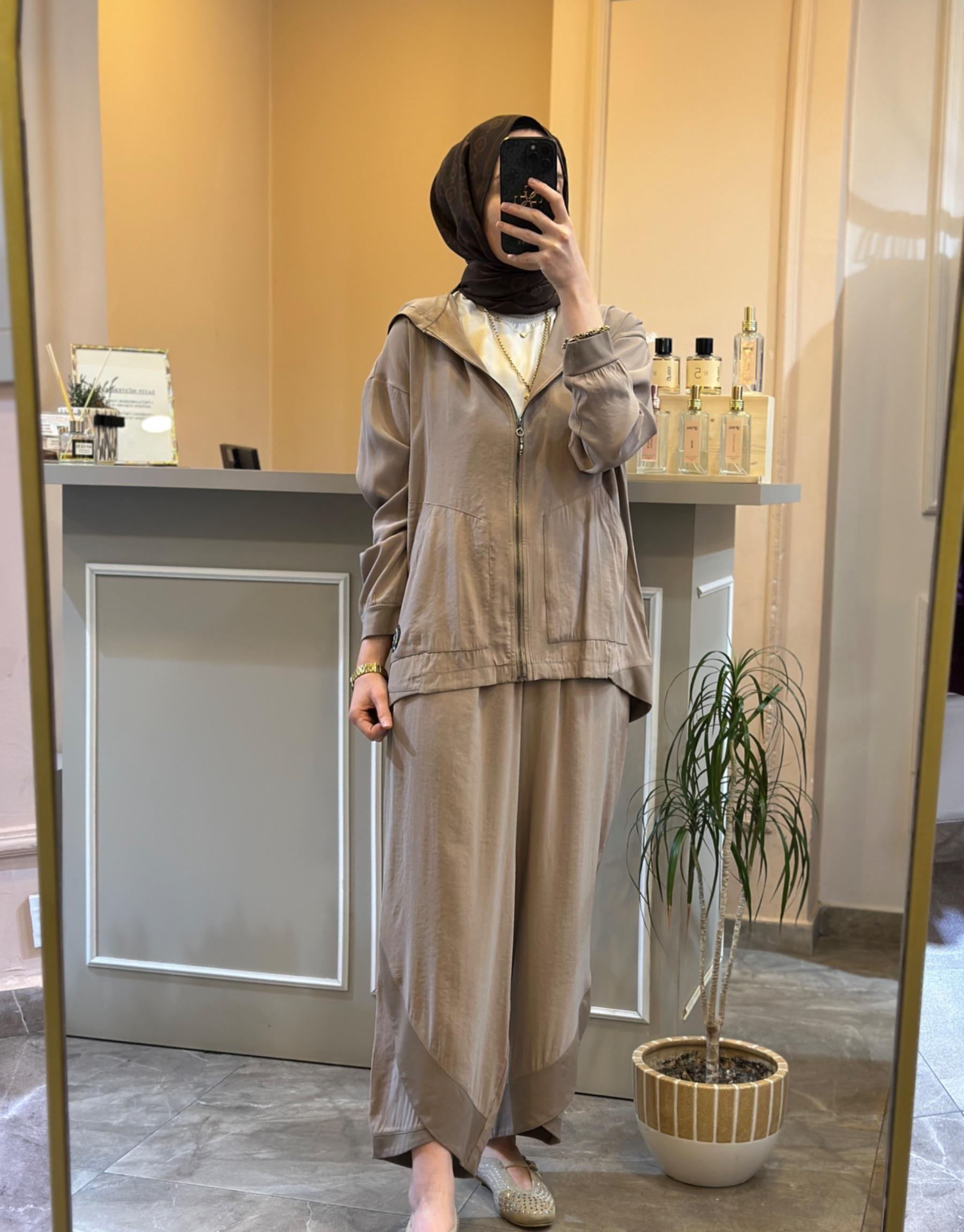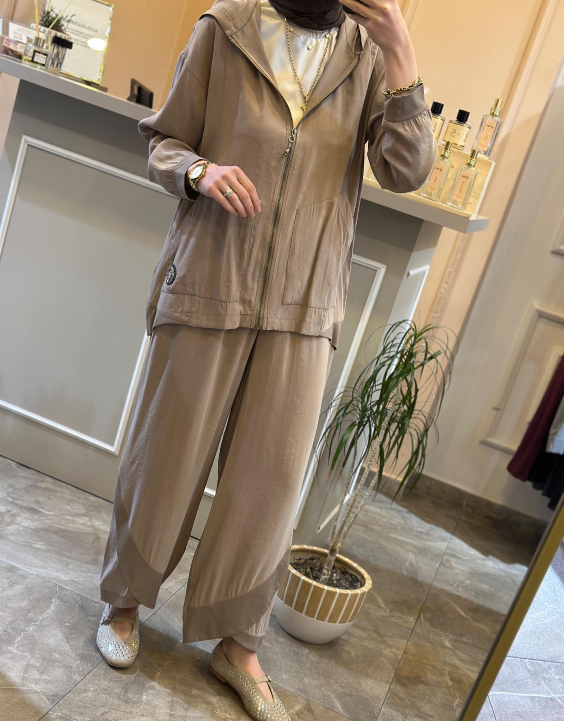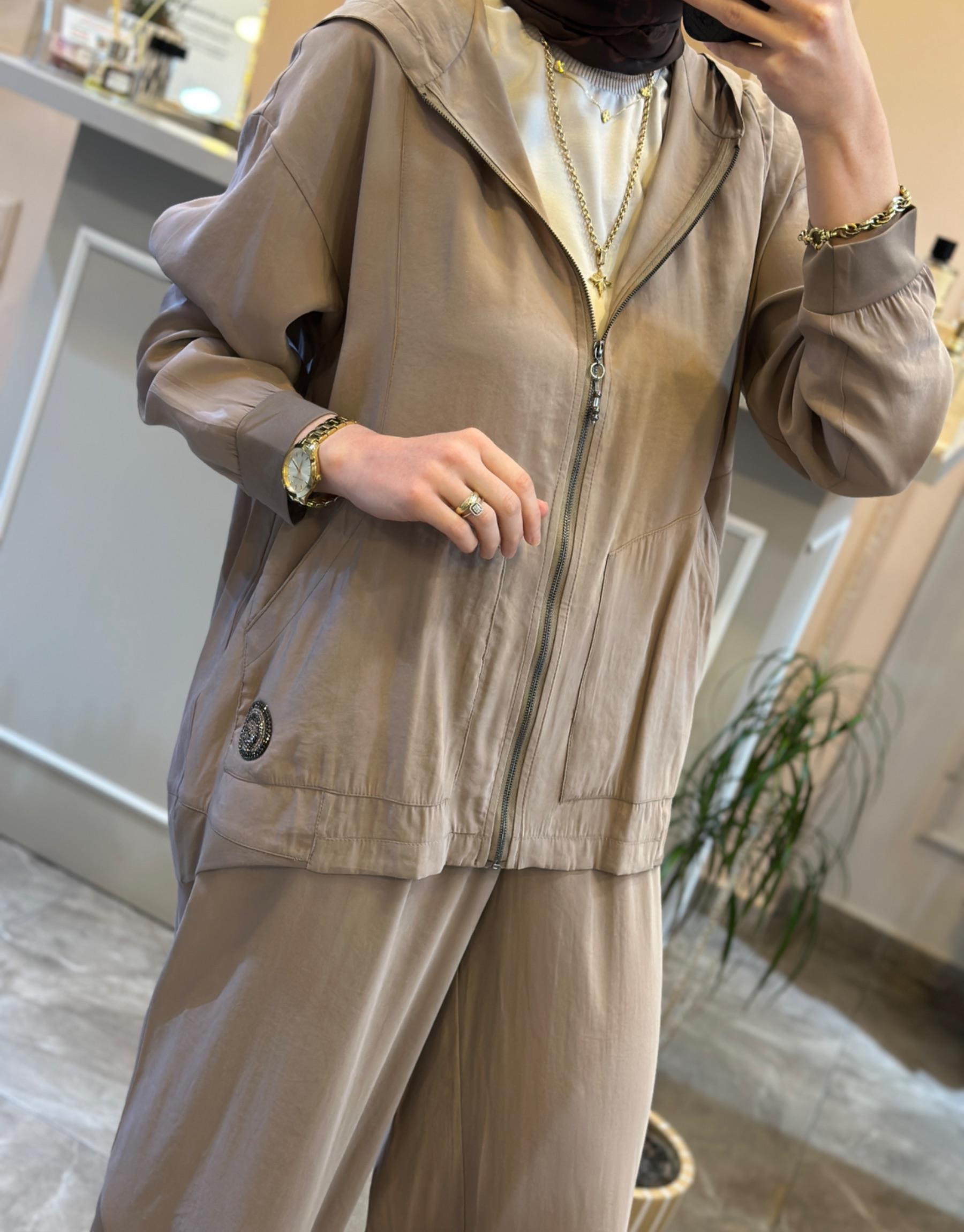 CEREMONY Kapüşonlu ve Fermuarlı Cebi Arma Detaylı Pantolonlu Modal Takım | Ceremony