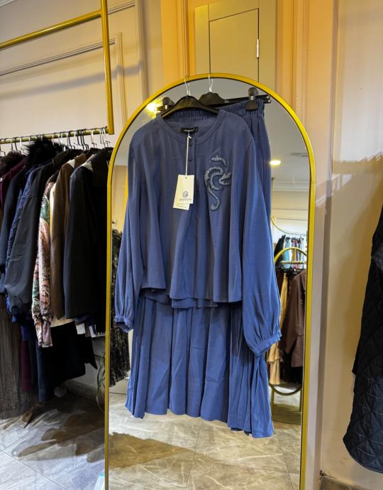 CEREMONY Kristal İşlemeli Etekli Modal Takım İndigo