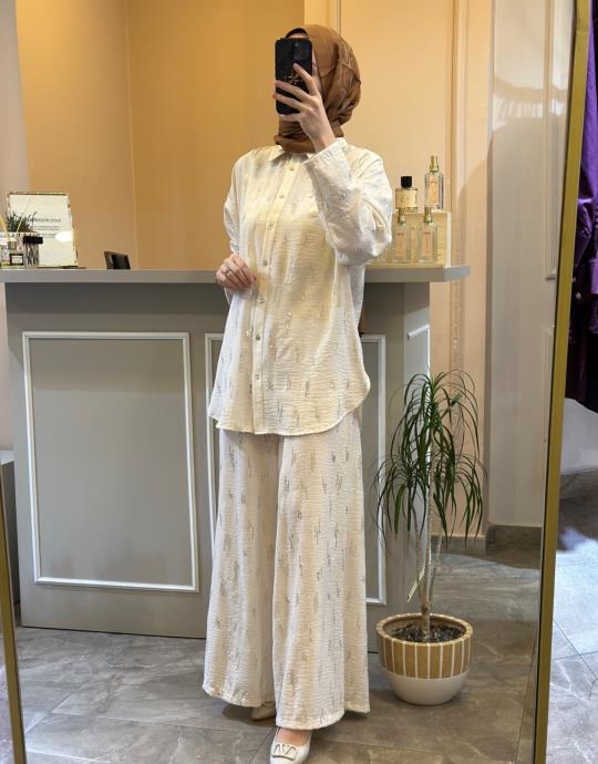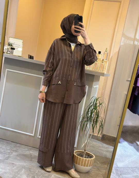 GHİSA ÜSTÜ YANDAN MODELLİ ETEKLİ TAKIM Kahve