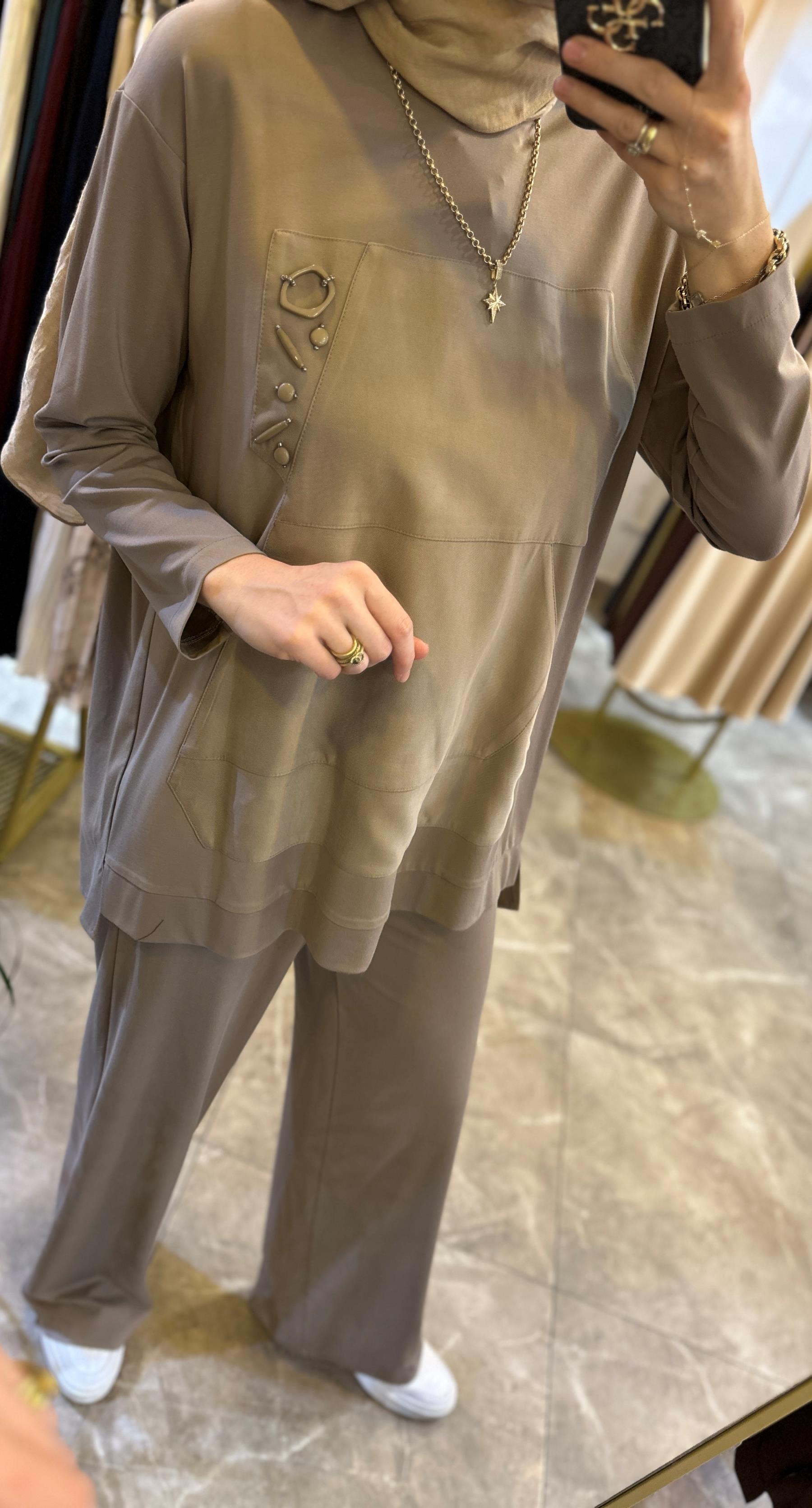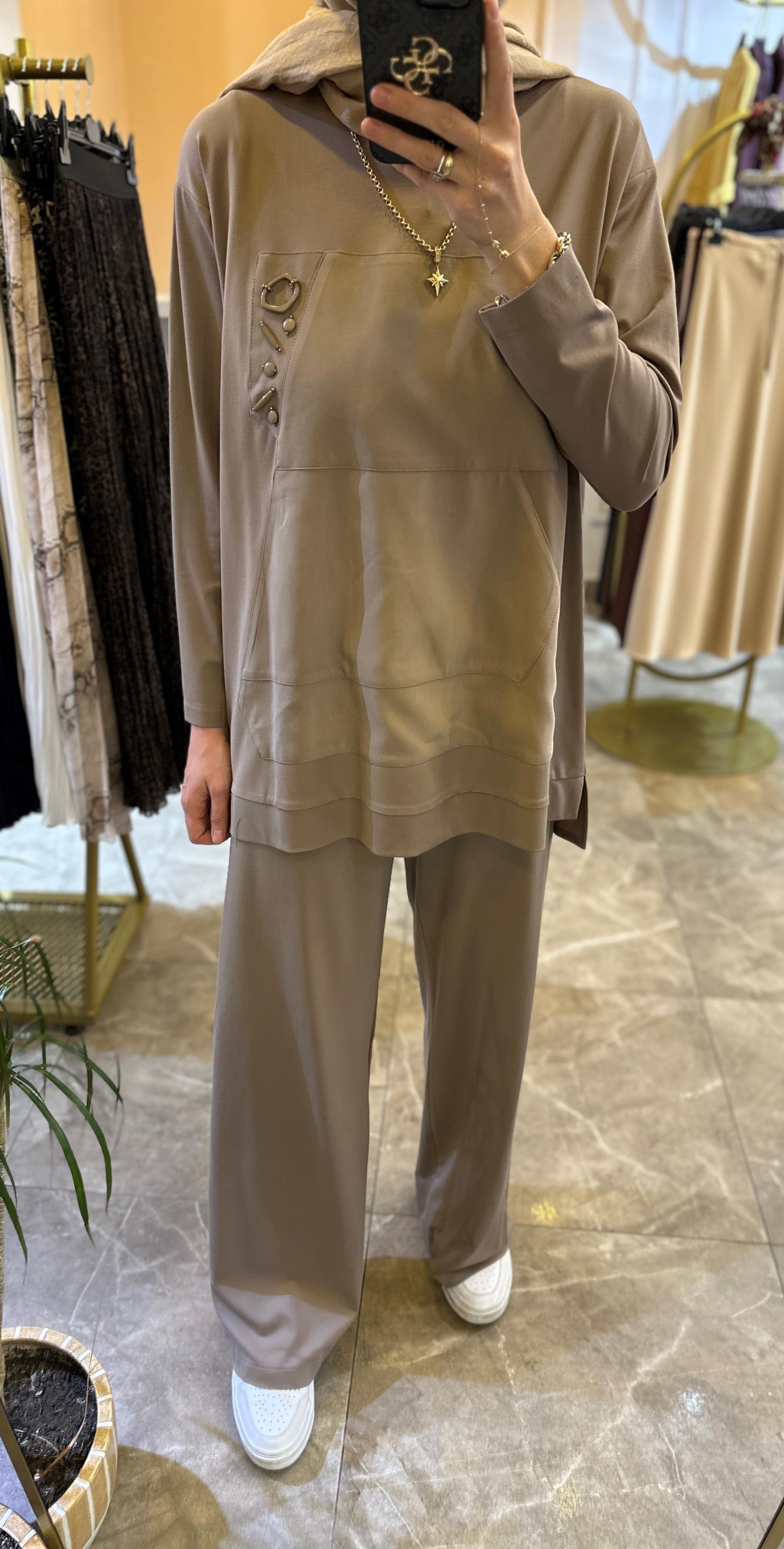 CEREMONY Sol Göğüsü İşlemeli Pantolonlu Bambu Takım | Ceremony