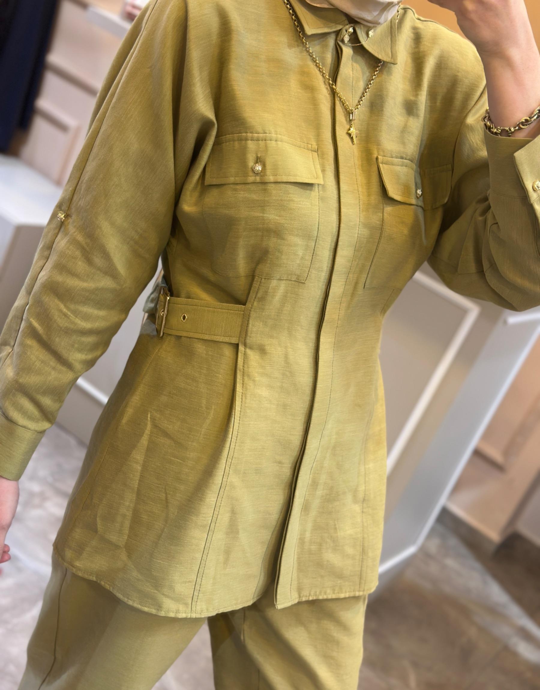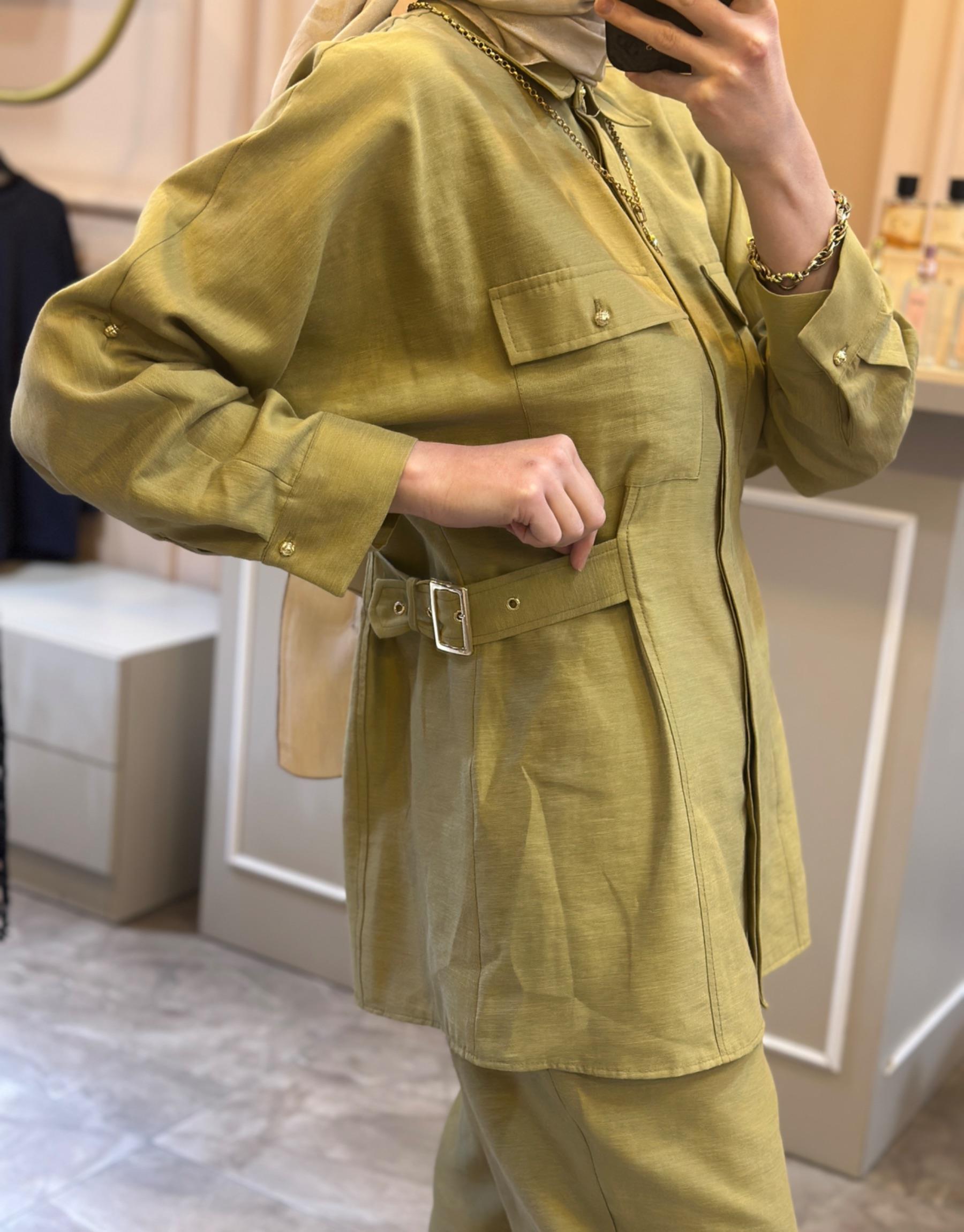 GHİSA YANDAN BROŞLU TRİKO BLUZ Yeşil