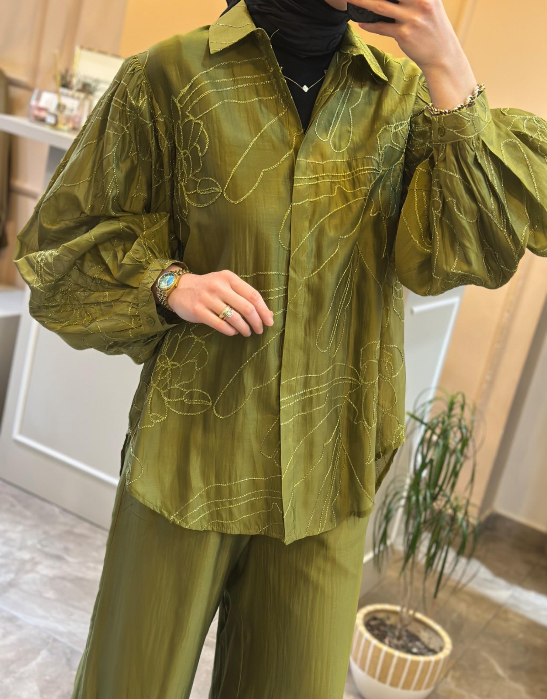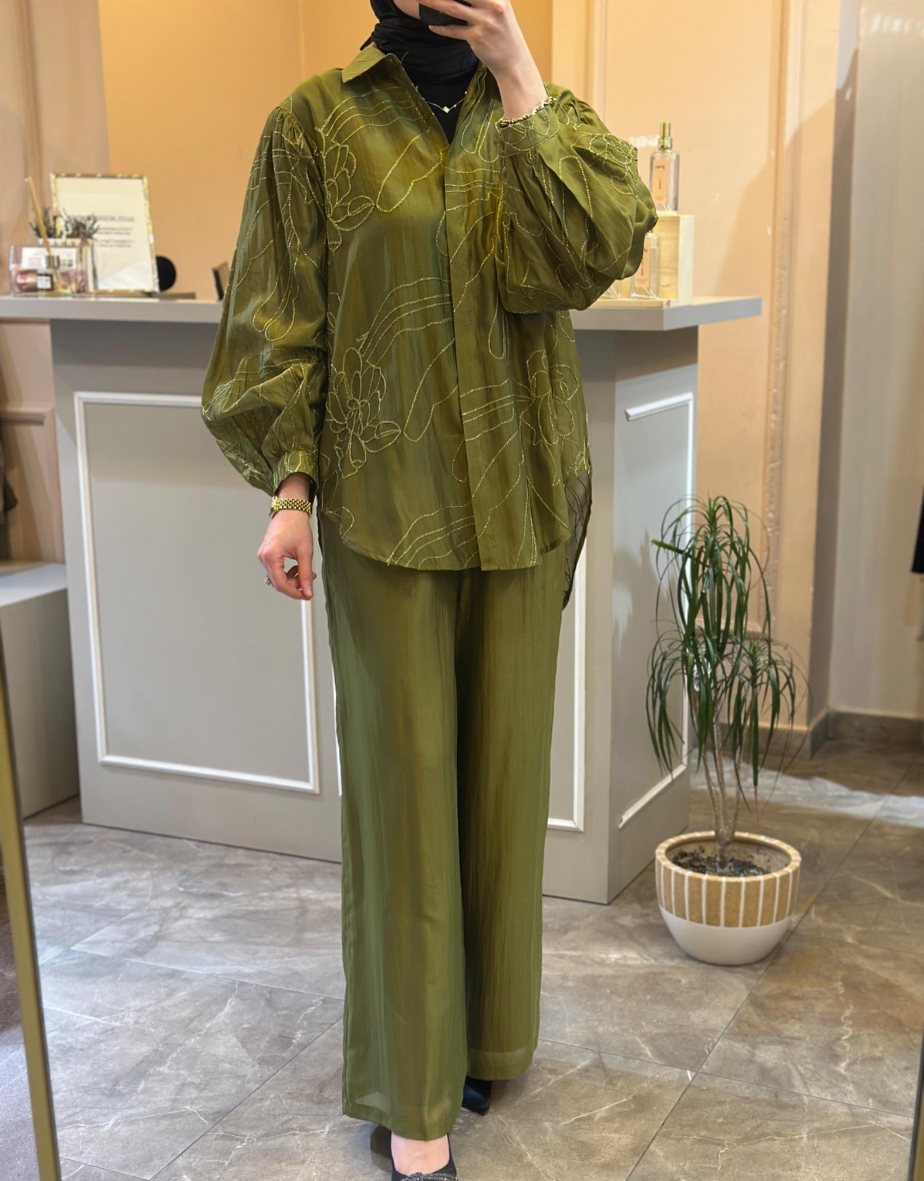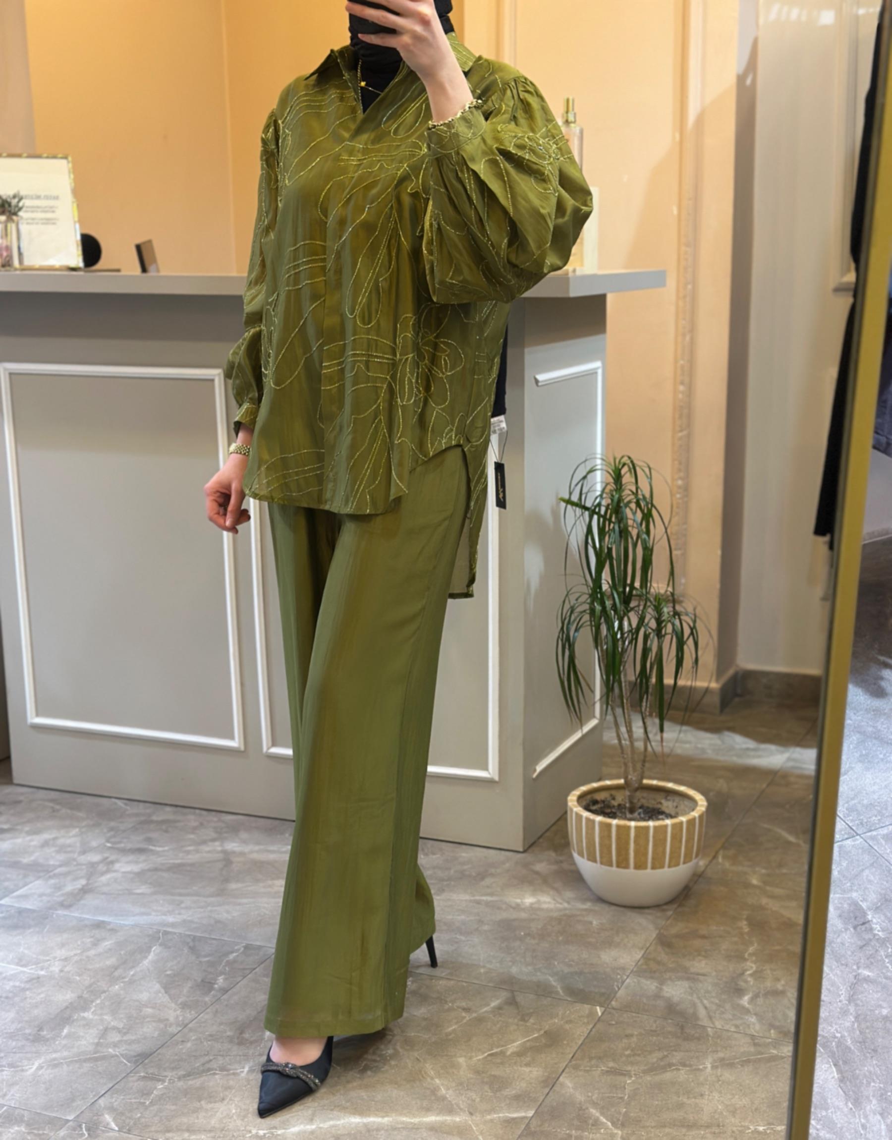GHİSA GÖMLEĞİ ÇİÇEK İŞLEMELİ TAKIM | Ghisa