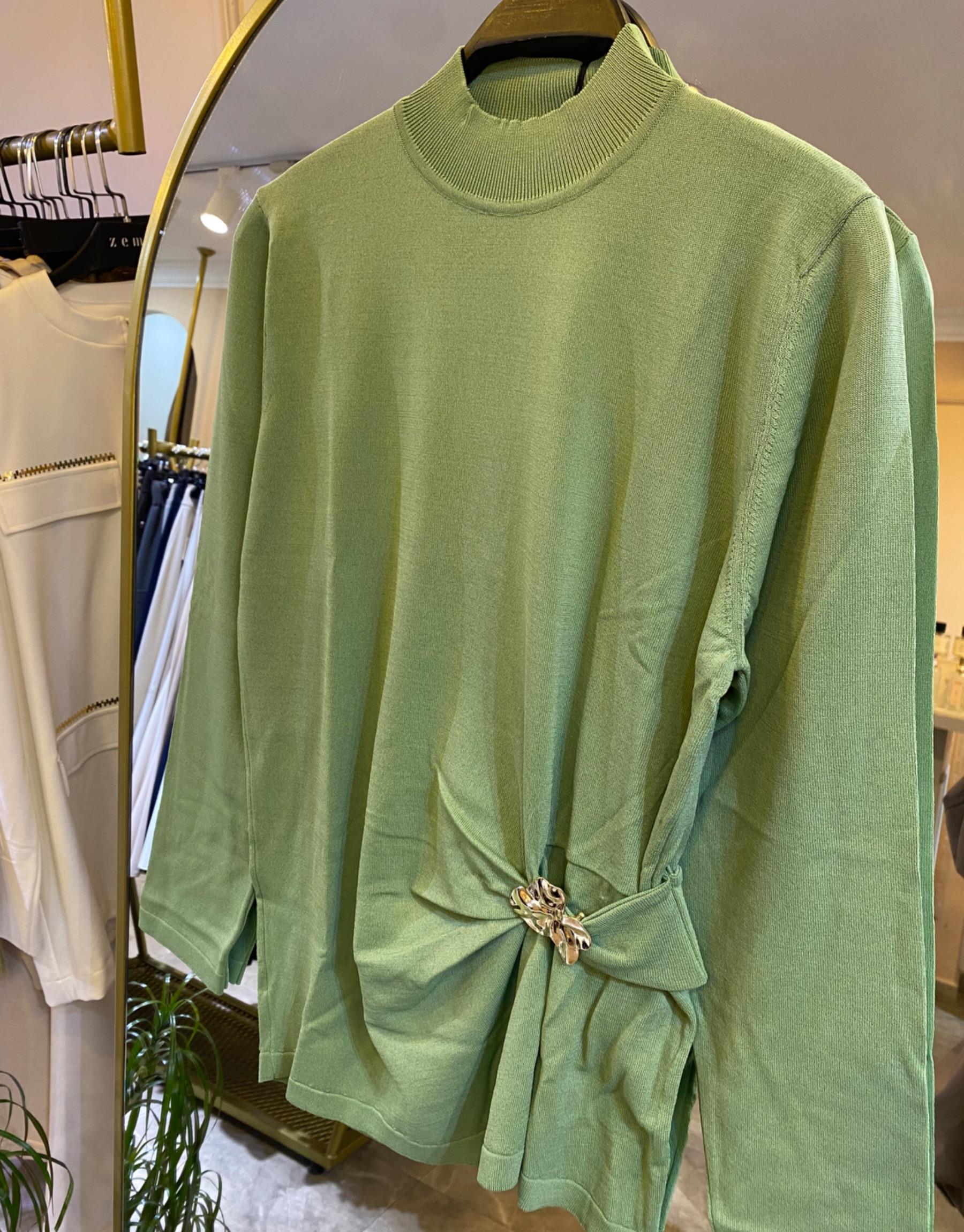 GHİSA İKİ RENKLİ DANTEL DETAYLI GÖMLEK Yeşil
