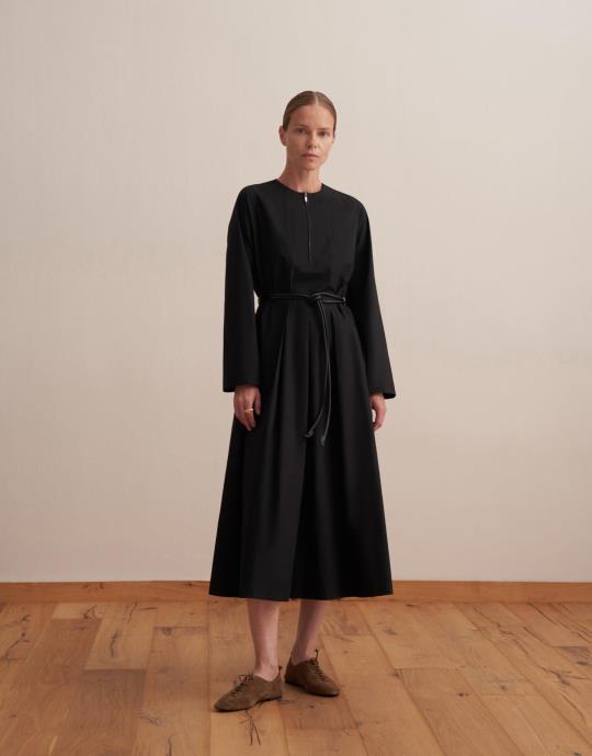 BASIC UZUN KOLLU BAMBU ELBİSE Siyah