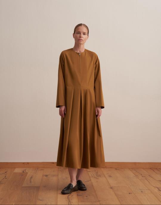 BASIC UZUN KOLLU BAMBU ELBİSE Kahve