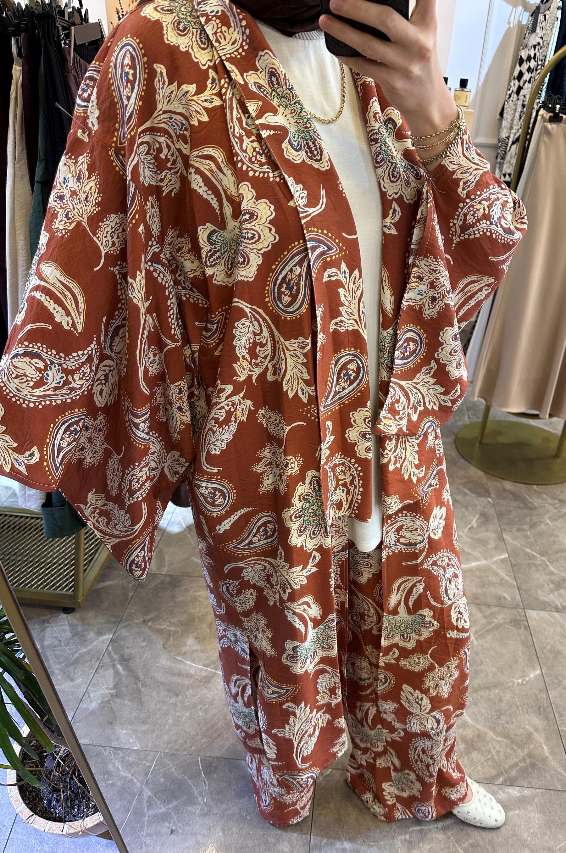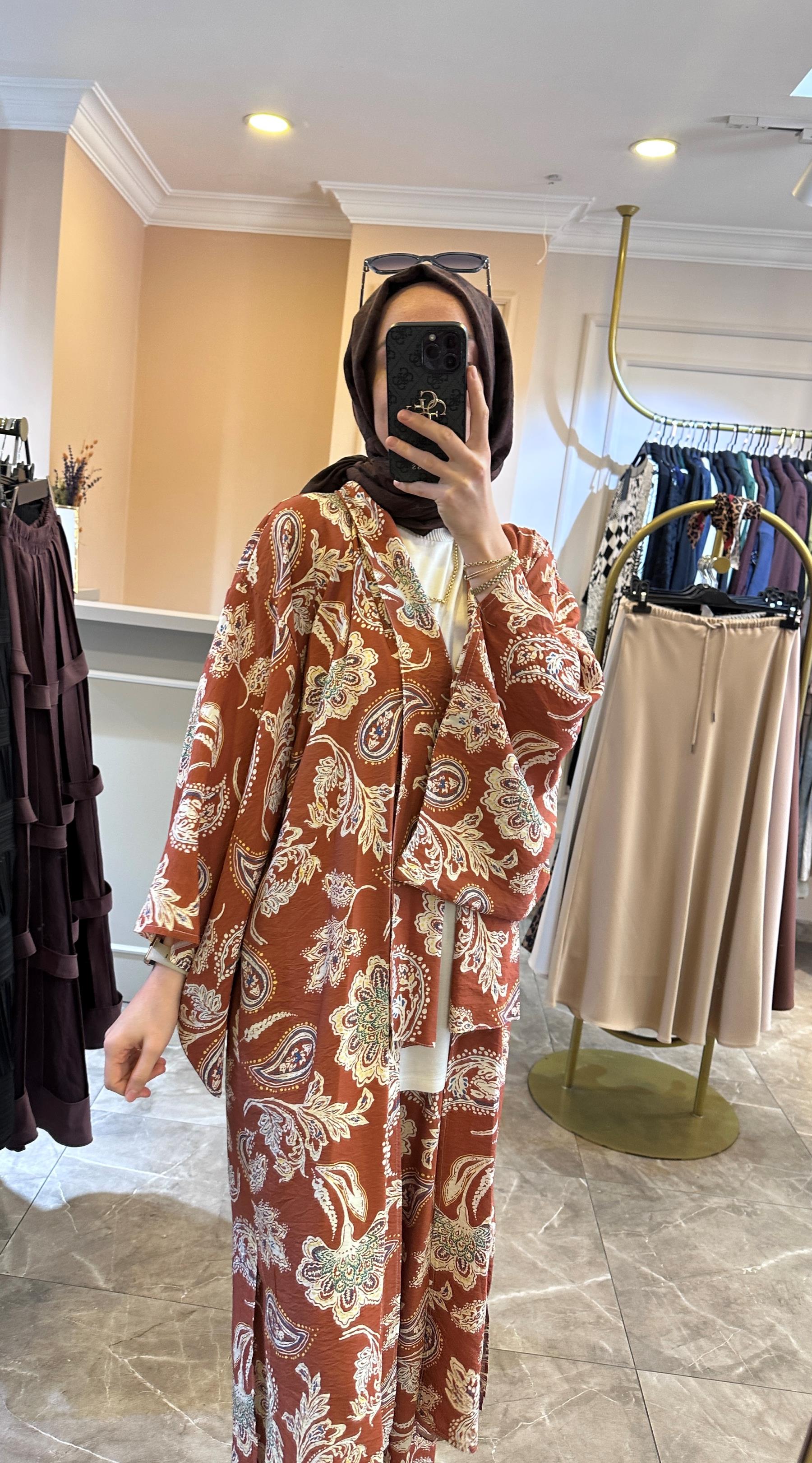 BASIC UZUN KOLLU BAMBU ELBİSE Kahve