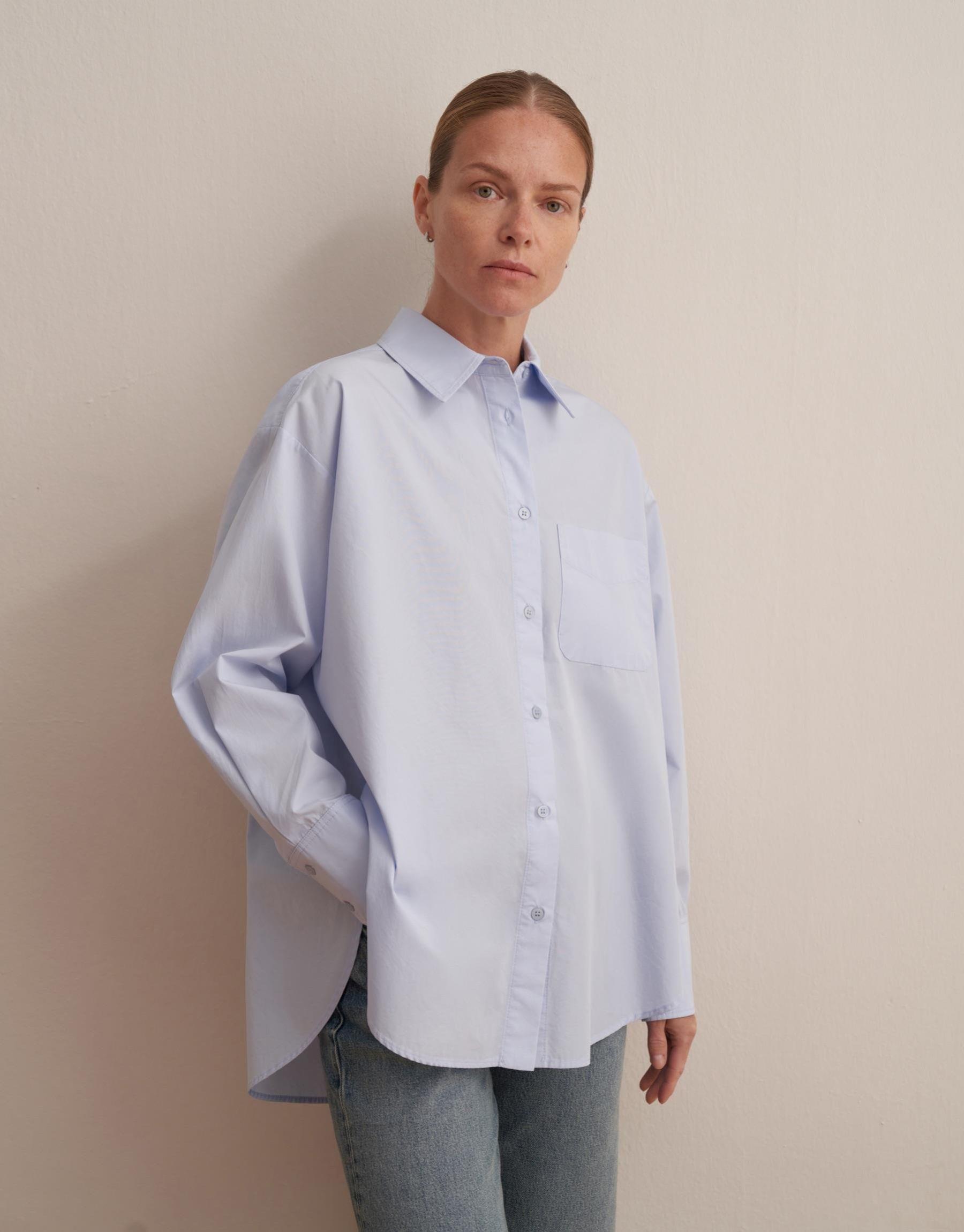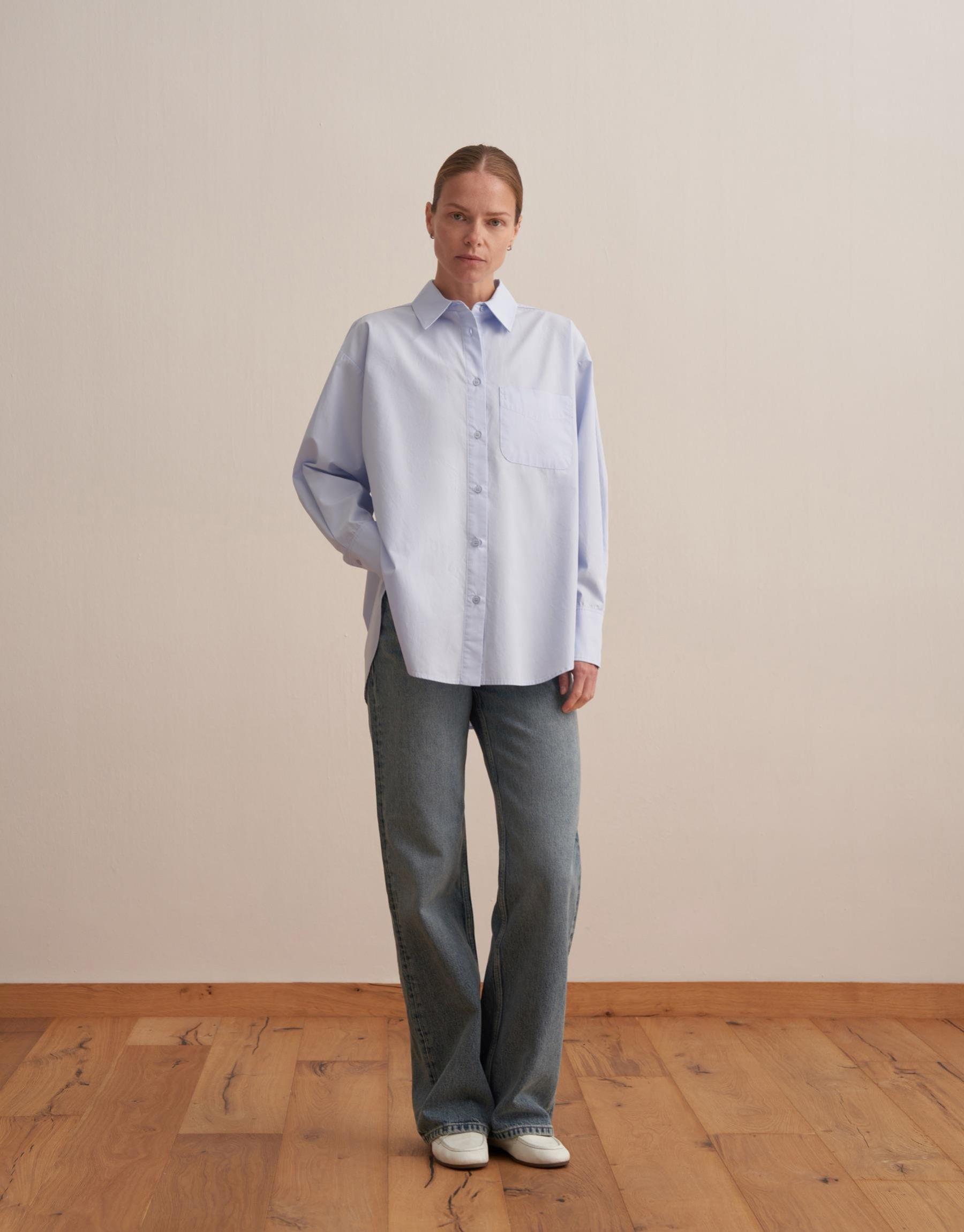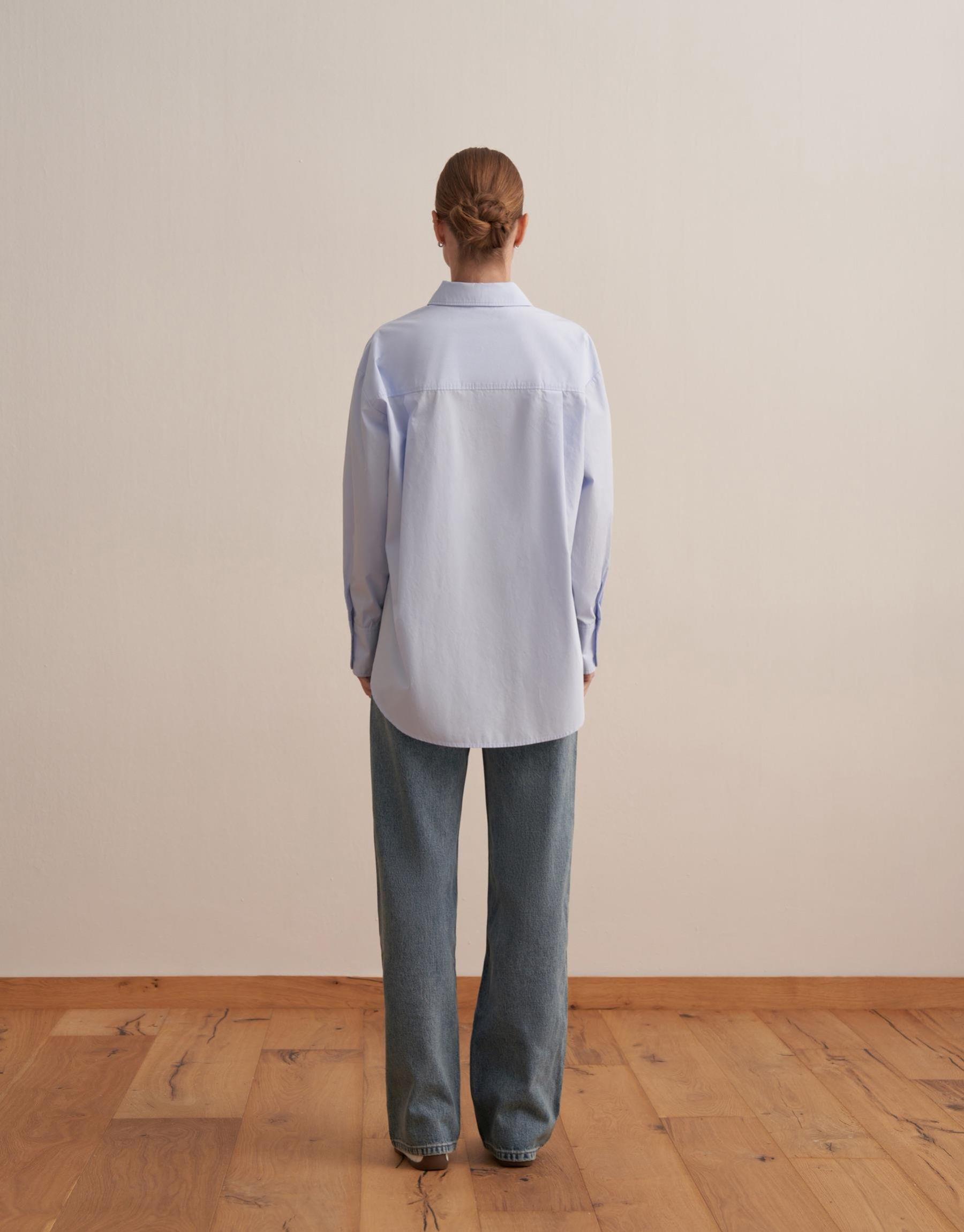 Yırtmaç Detaylı Koton Gömlek Açık Mavi