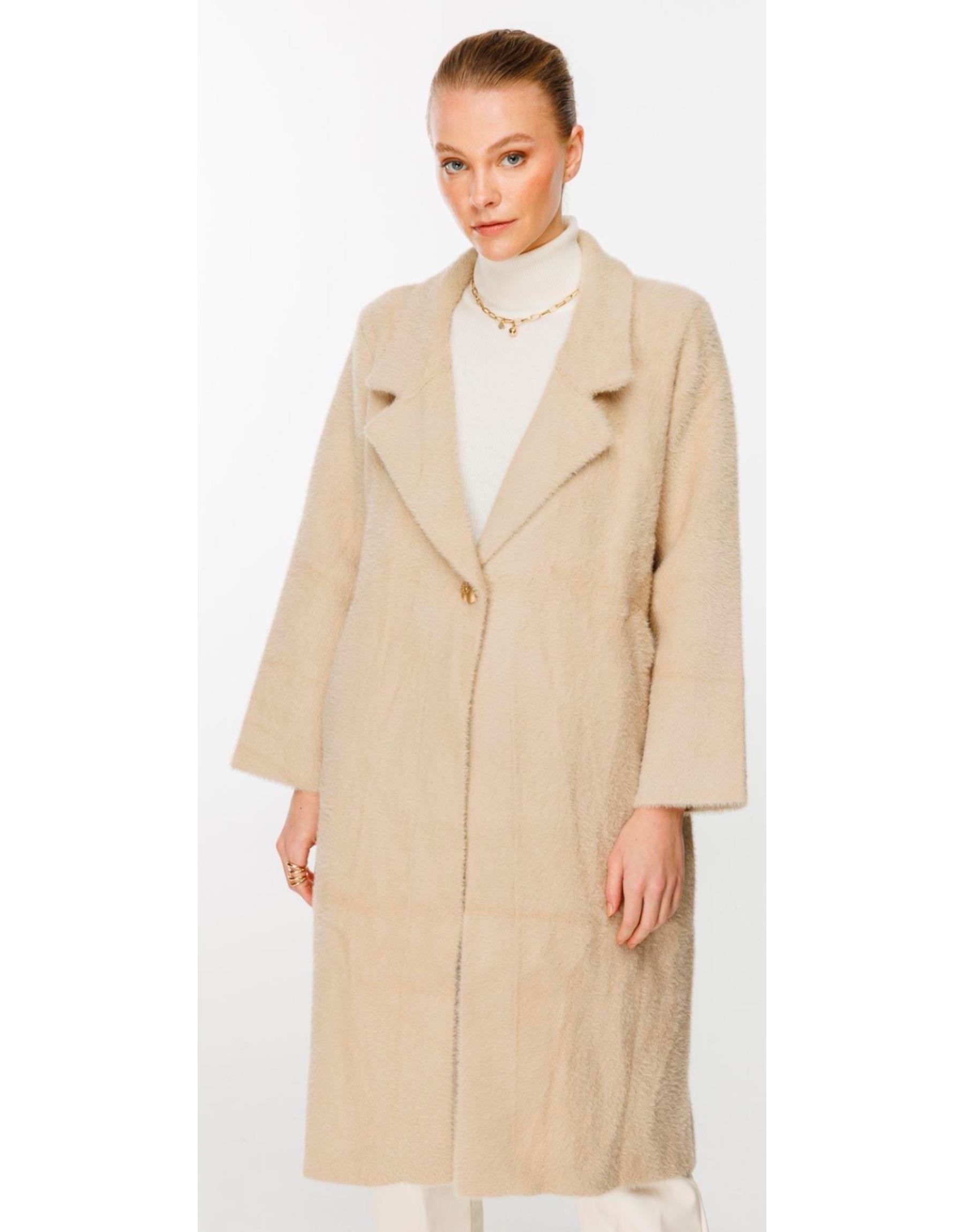 KADRİYE BAŞTÜRK KRUVAZE YAKA APOLET DETAYLI KAŞE KABAN Kahve