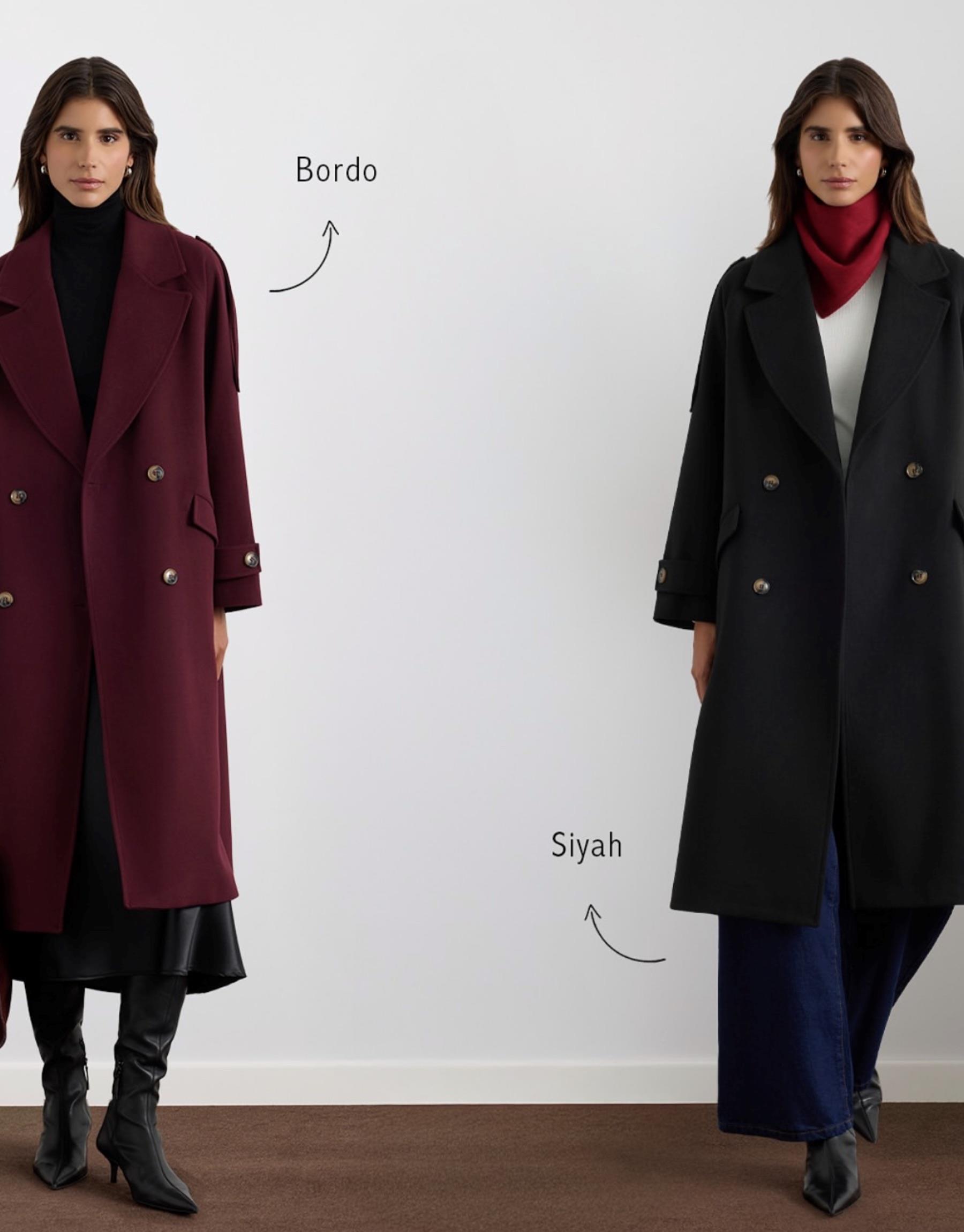 KADRİYE BAŞTÜRK KRUVAZE YAKA APOLET DETAYLI KAŞE KABAN | Kadriye basturk