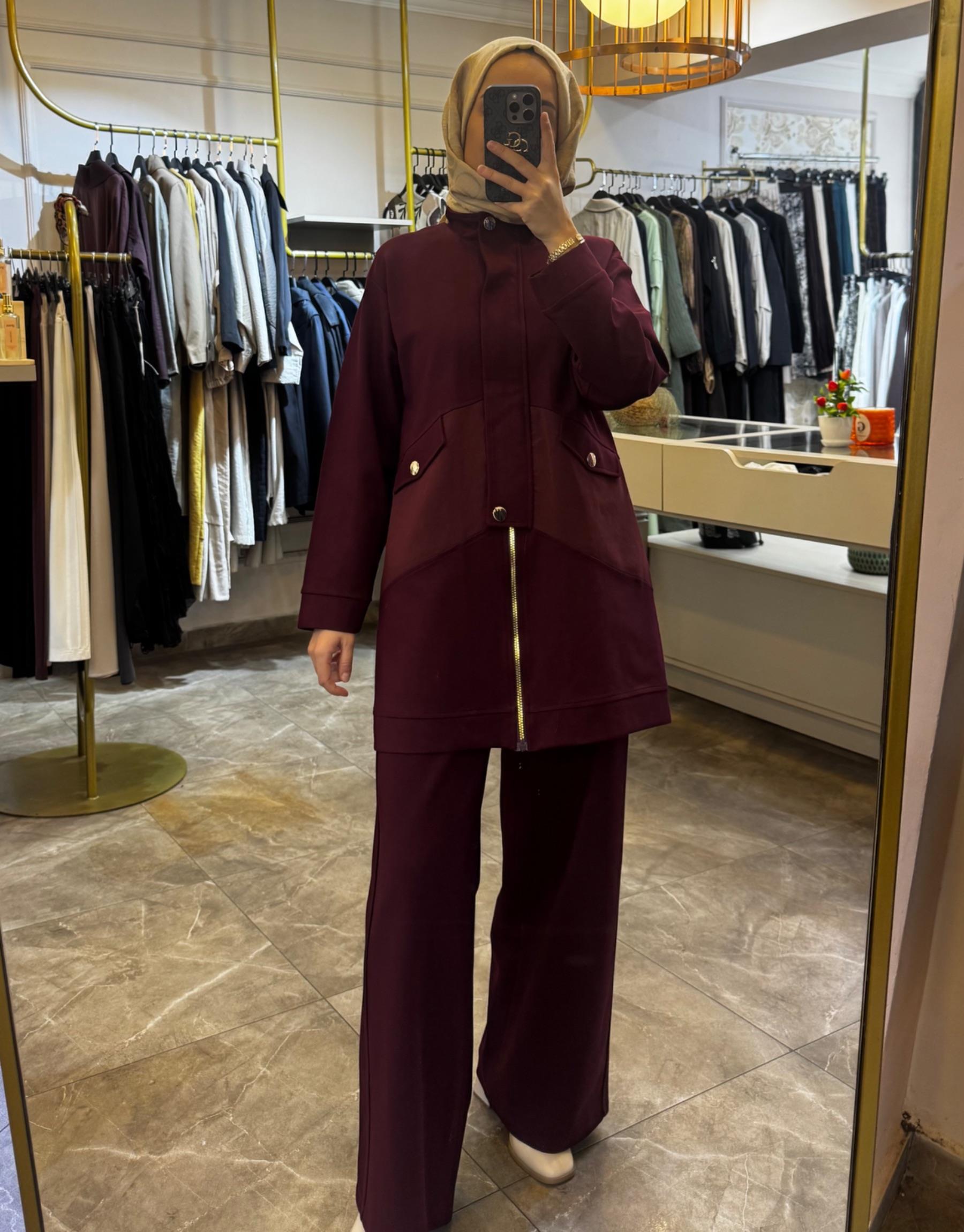 GHİSA MODAL KUMAŞ SPOR HIRKALI TAKIM Mürdüm