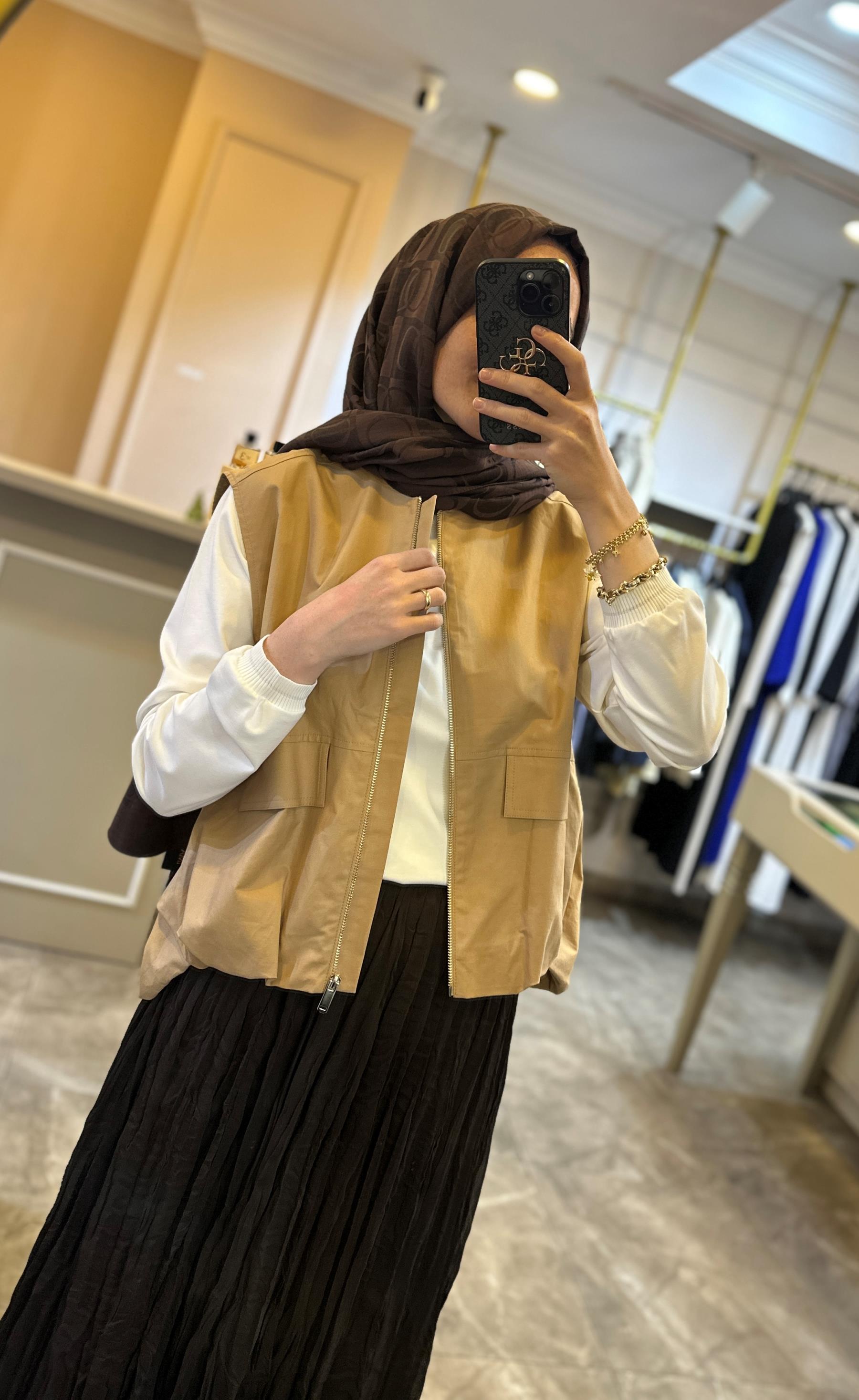 Fermuar Kapamalı Volanlı Yelek | Kk-Desing