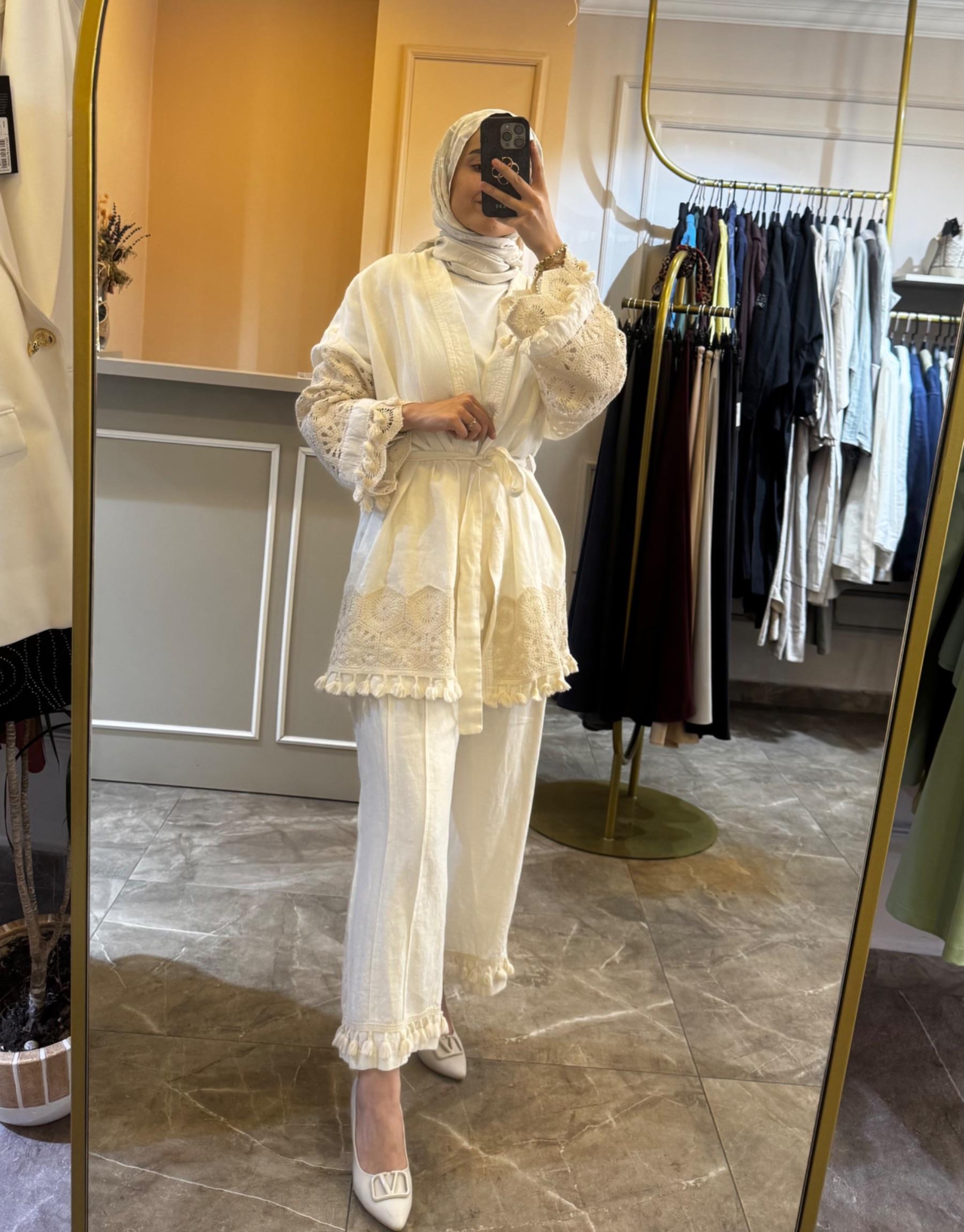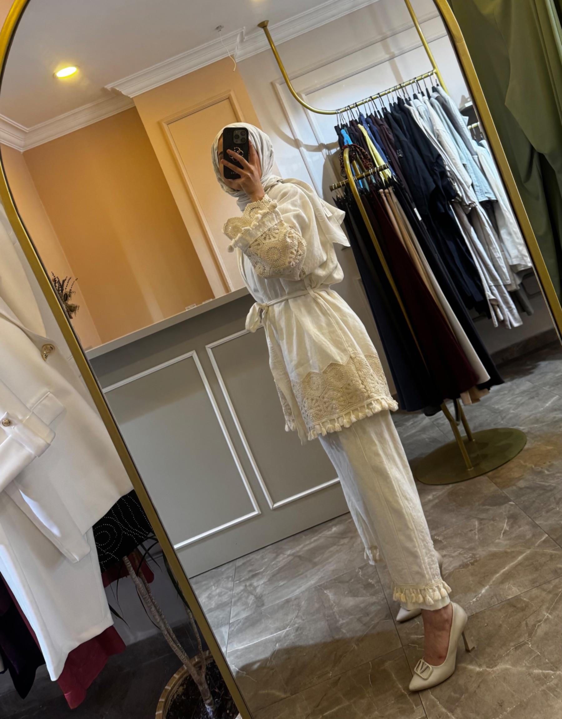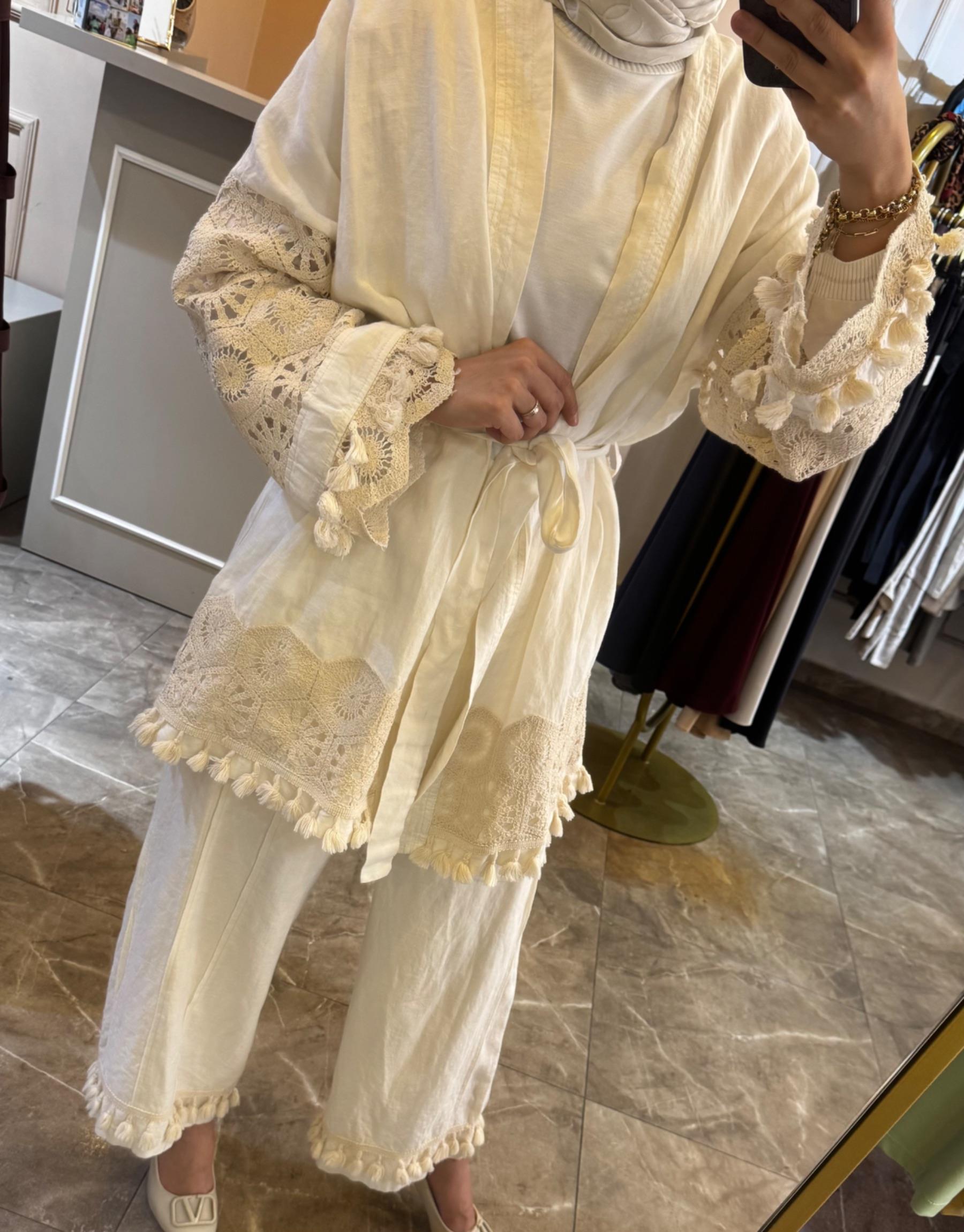 GHİSA Kol Dantel Detay Keten Takım | Ghisa