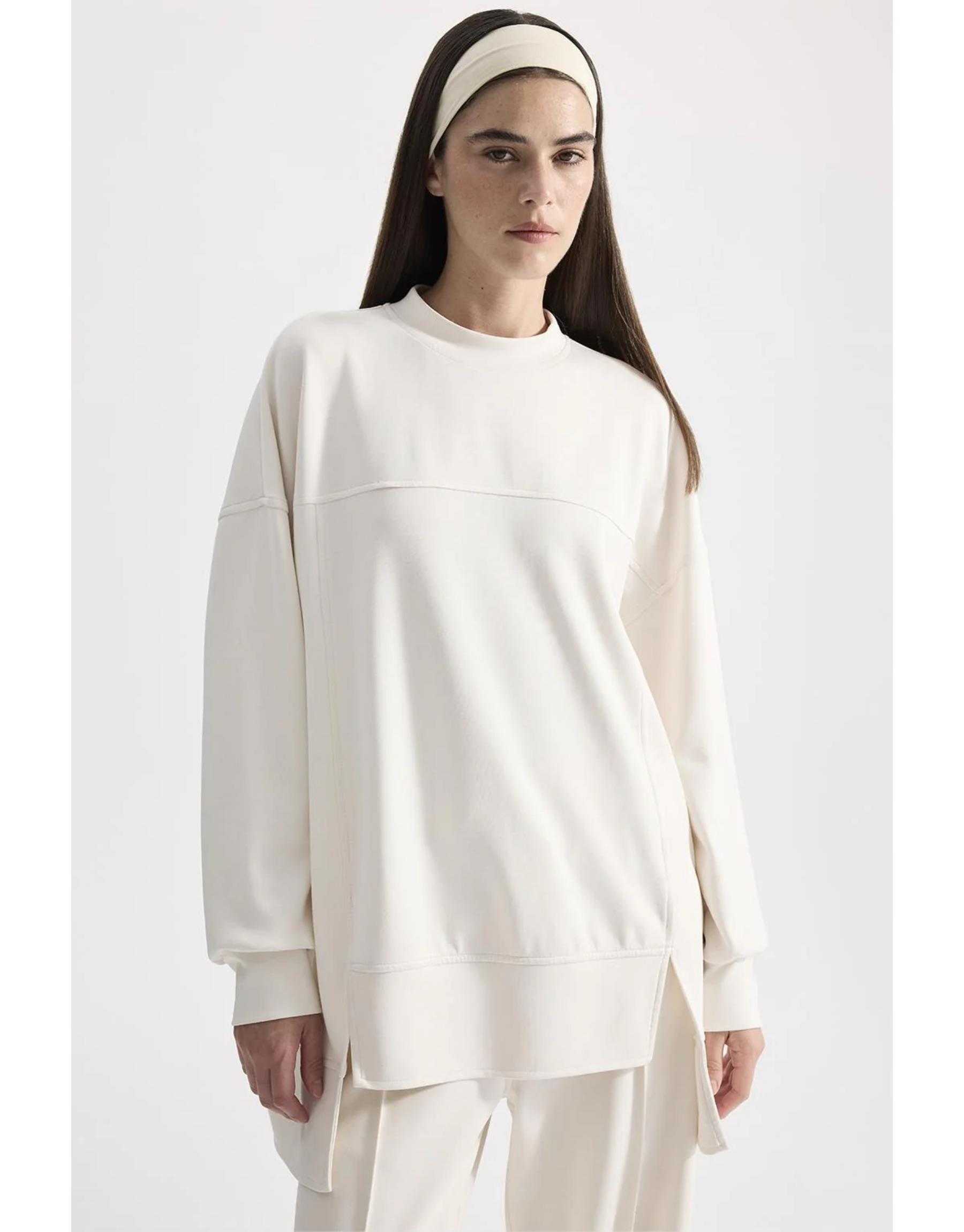 Modal örme asimetrik kesim sweatshirt ekru, nefes alan kumaşı ile gün boyu rahatlığı hissederken stilinizi yükseltir ve hem günlük hem de şık kombinlerle mükemmel uyum sağlar. Gardırobunuzun vazgeçilmezlerinden biri olacak.