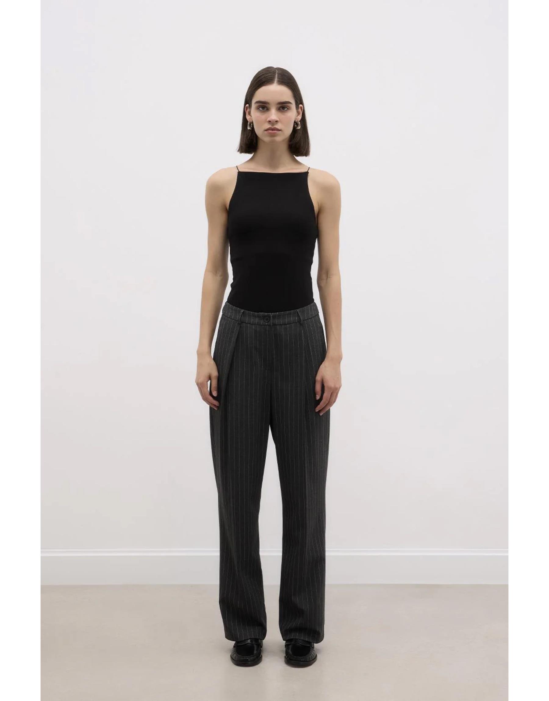 Çizgili fit palazzo pantolon gri, dünya modasının vazgeçilmez parçalarından biridir ve hem trend hem de sofistike bir görünüm sunar. Uzun ve dökümlü kesimiyle bacak boyunu uzatırken, hareket özgürlüğü sağlayan rahat bir stil yaratır. Şık bluzlar veya basic üstlerle kolayca kombinlenebilir, modern ve zahmetsiz bir şıklık yakalanabilir.