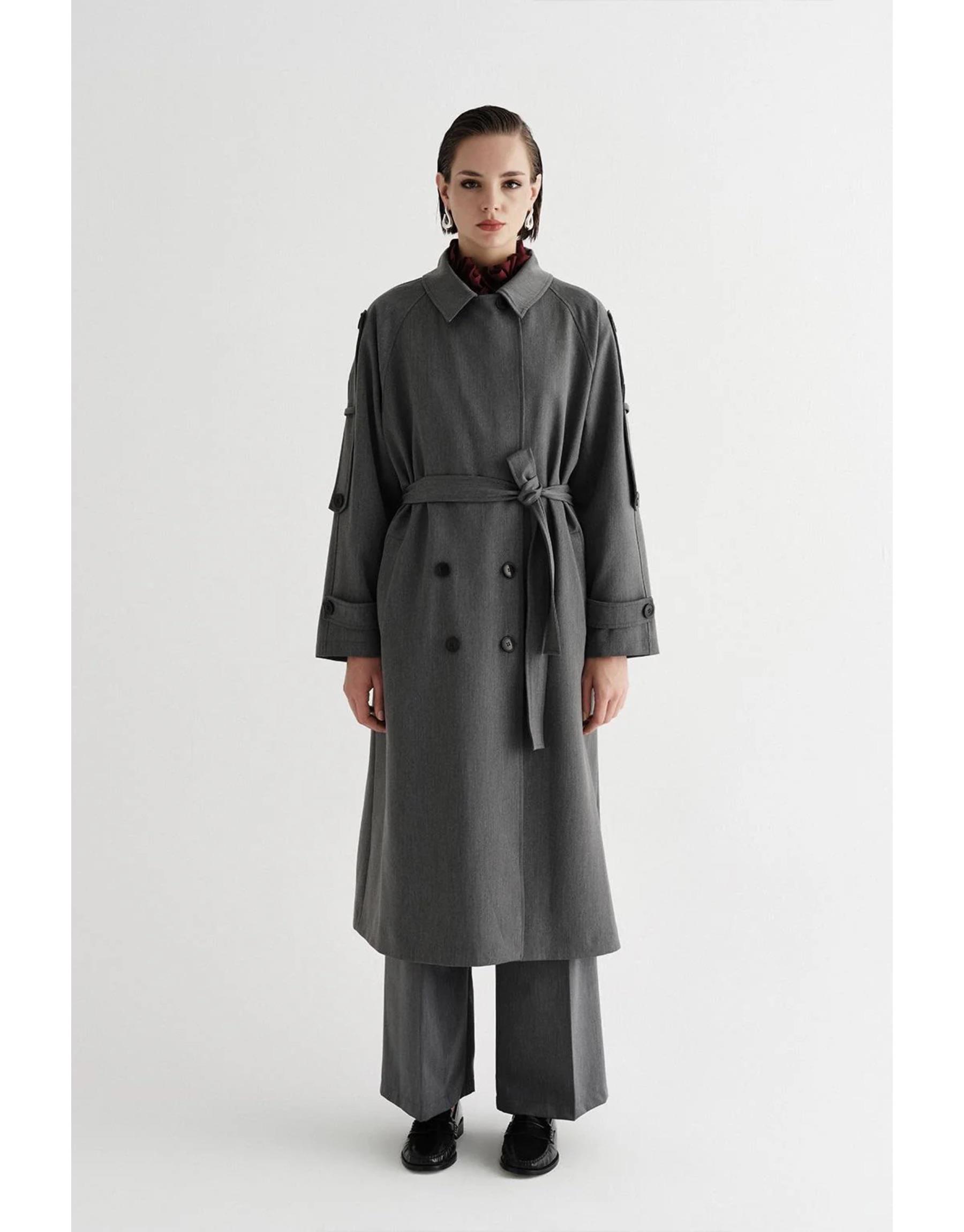 Uzun rahat kesim trençkot.