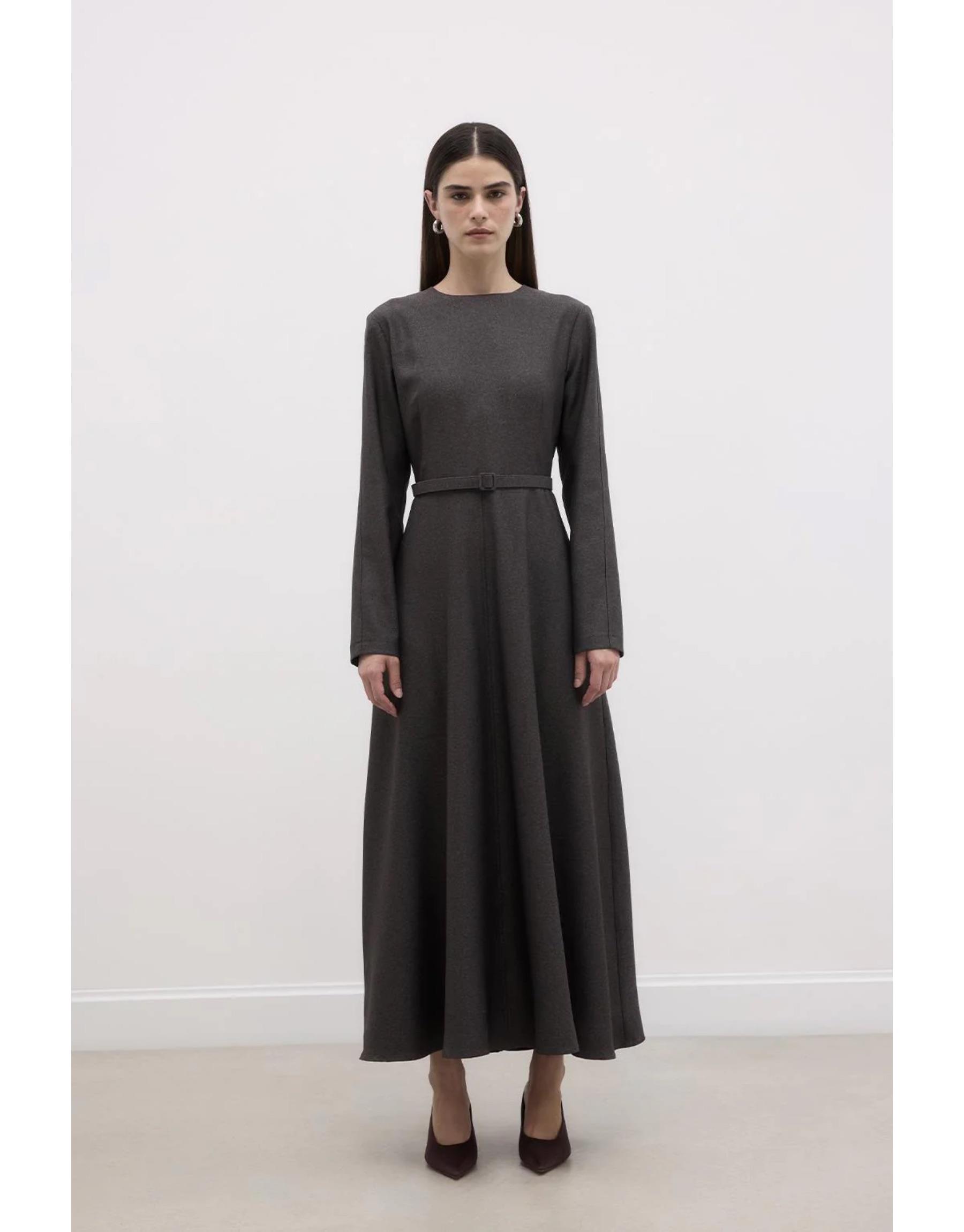 - Yandan cepli, göğüs altı pensli, arka gizli fermuarlı, bisiklet yaka, belden kesikli,