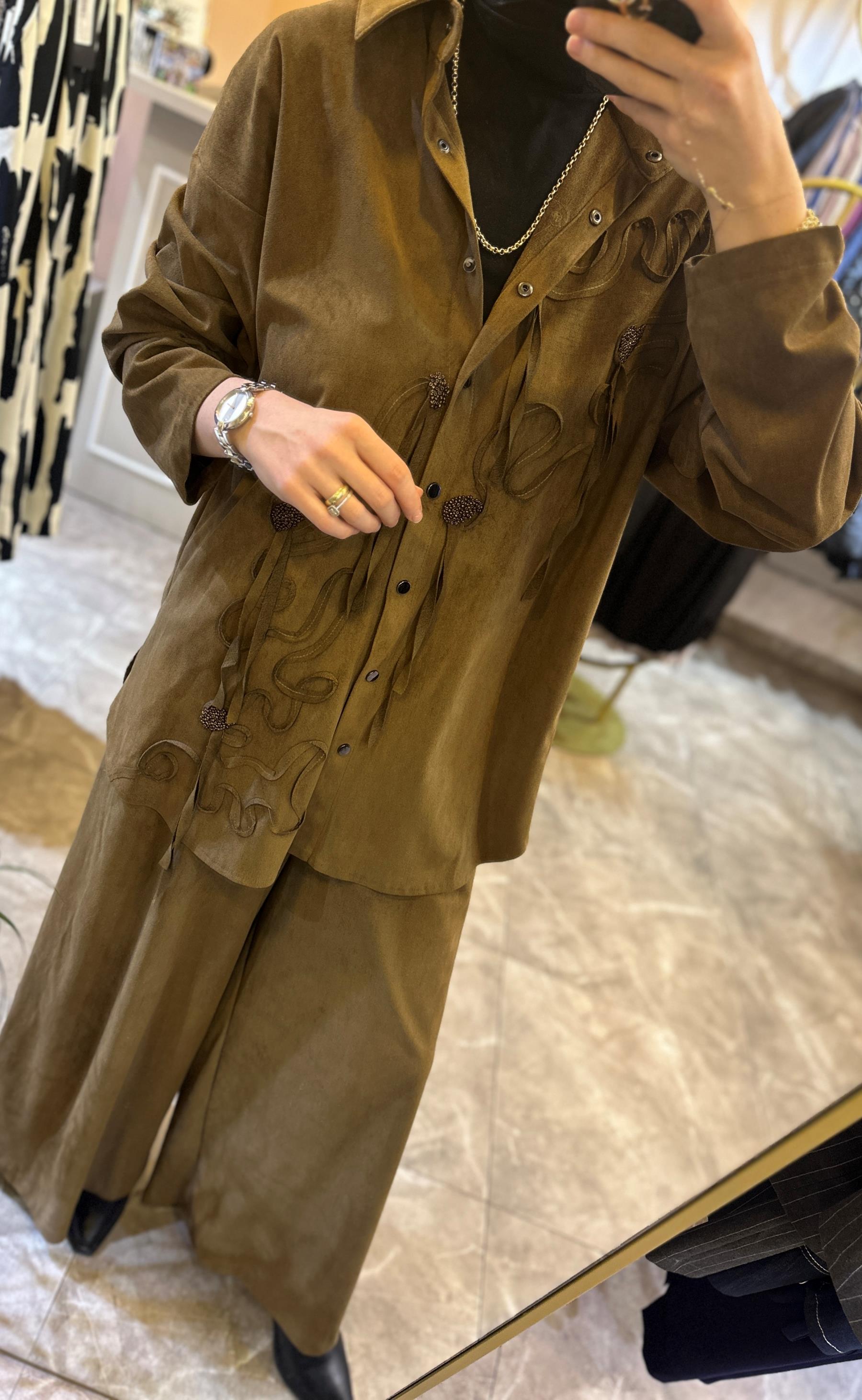 LİSSMORE YAKASI BONCUK İŞLEMELİ FERMUAR DETAYLI TAKIM Siyah