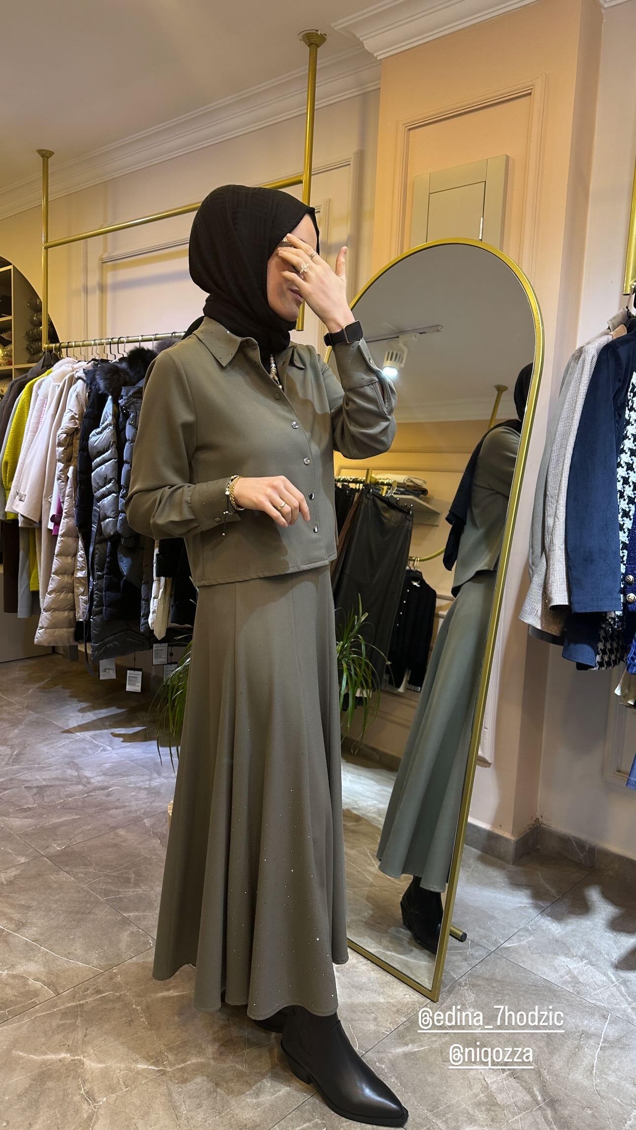 INES TAŞLI ETEKLİ TAKIM Haki