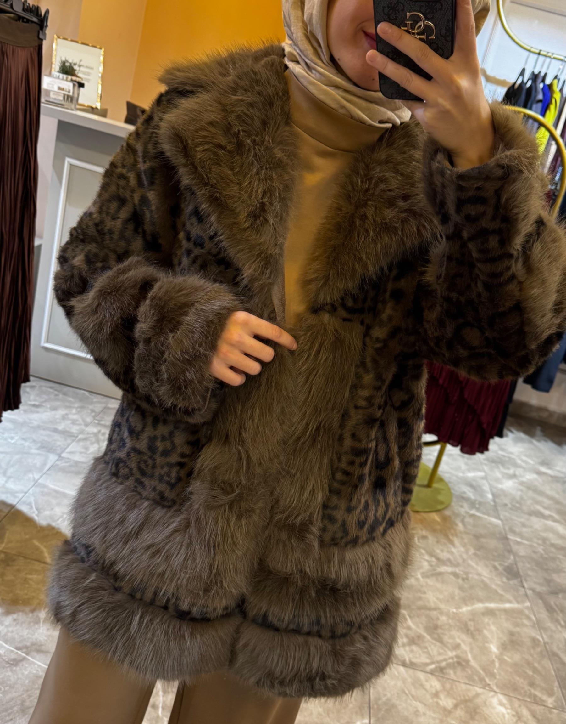 GHİSA Leopar Desenli Kürk Kaban | Ghisa