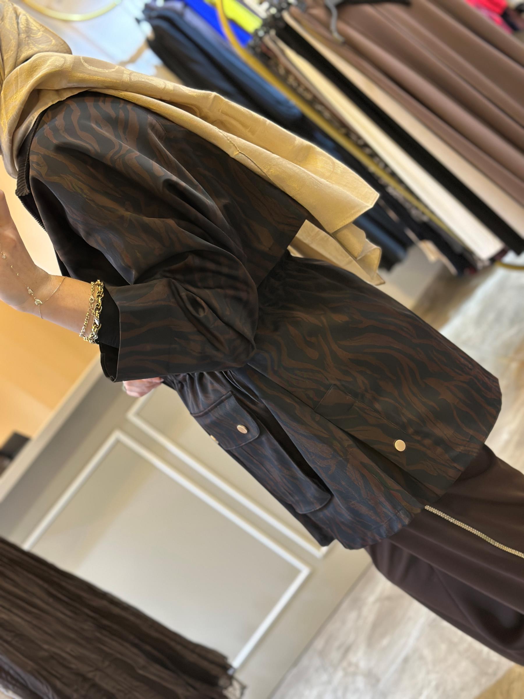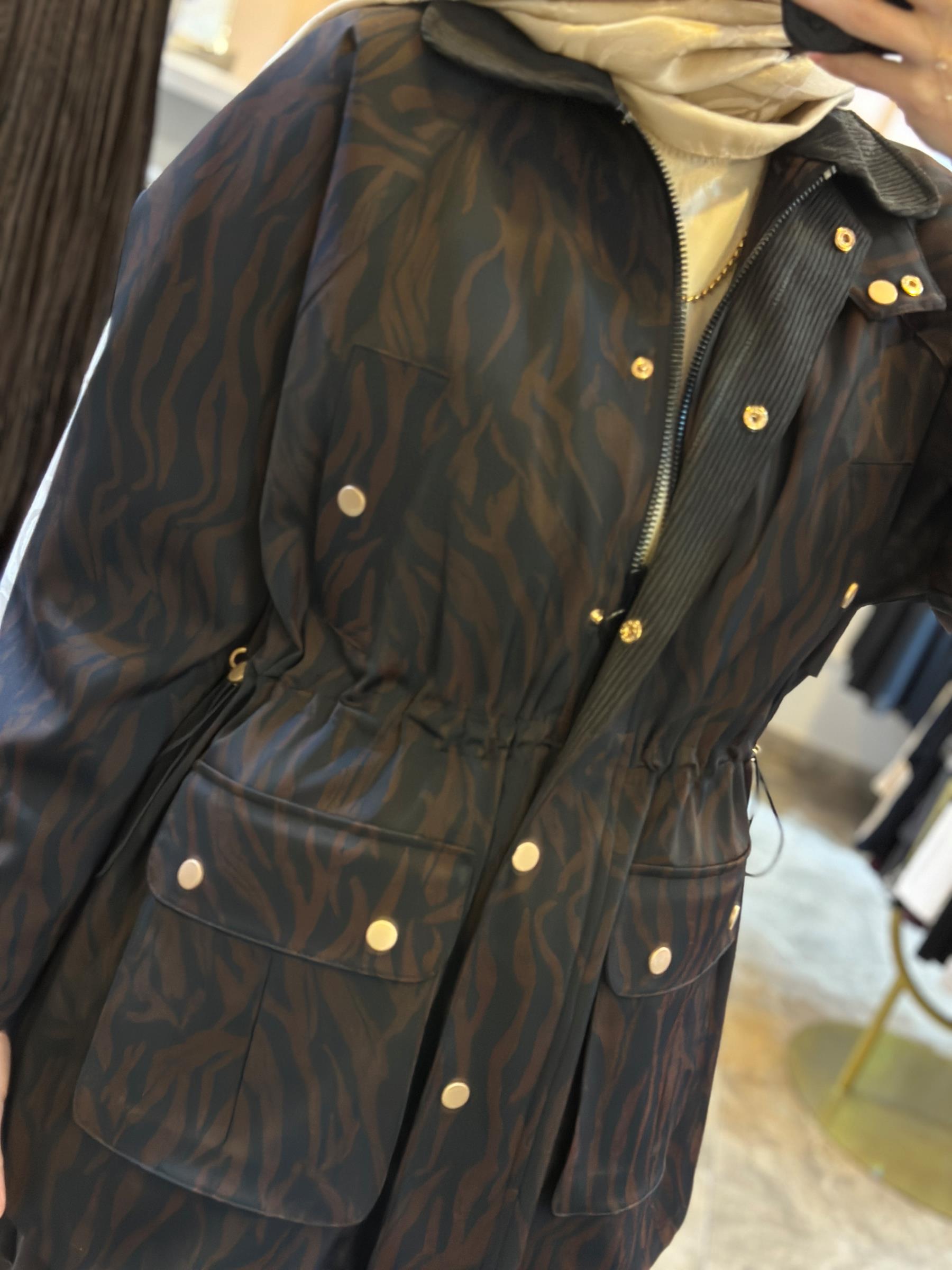 GHİSA ZEBRA DESEN BELDEN BÜZMELİ FERMUARLI KABAN | Ghisa