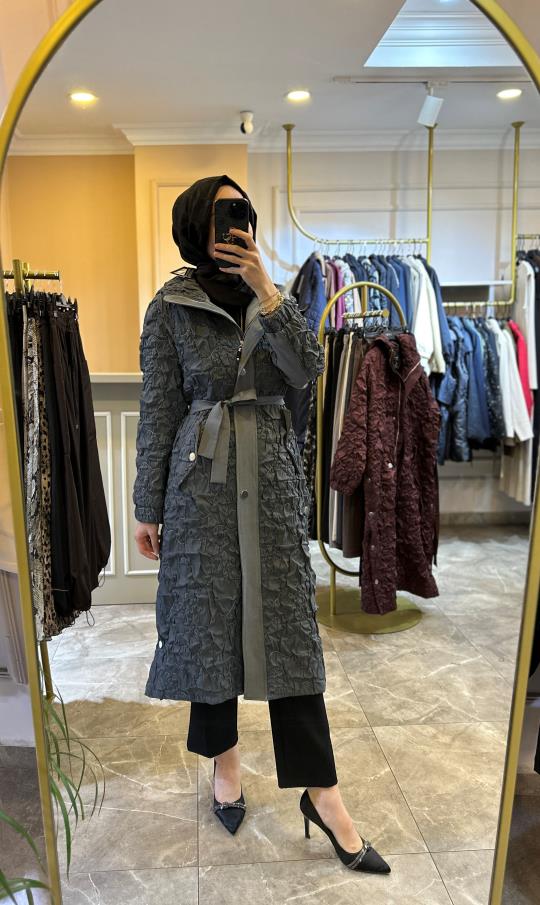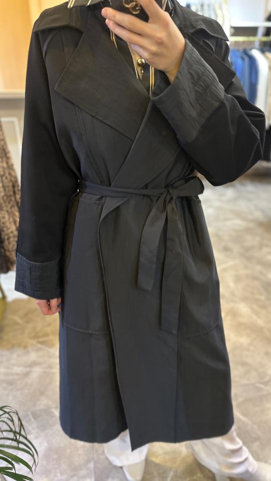 ARKASI KAPİTÖNE DETAYLI BELDEN KEMERLİ TRENÇKOT Siyah