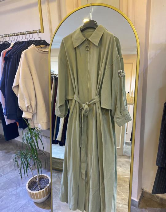 ÖNDEN FERMUARLI TEK KOLU TAŞ DETAY İÇTEN KEMERLİ KAP Haki