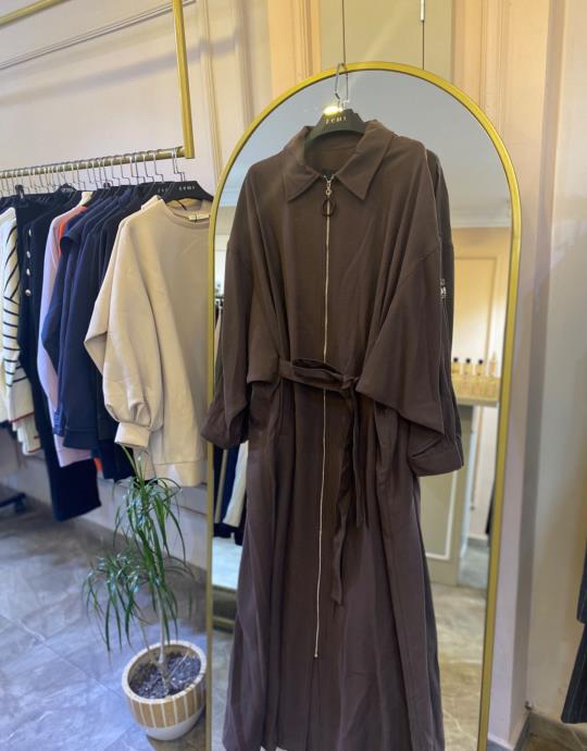 BASIC UZUN KOLLU BAMBU ELBİSE Kahve