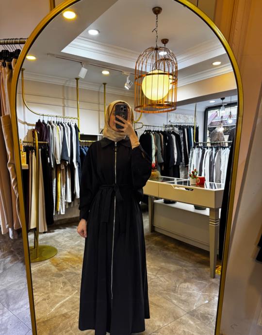 BASIC UZUN KOLLU BAMBU ELBİSE Siyah