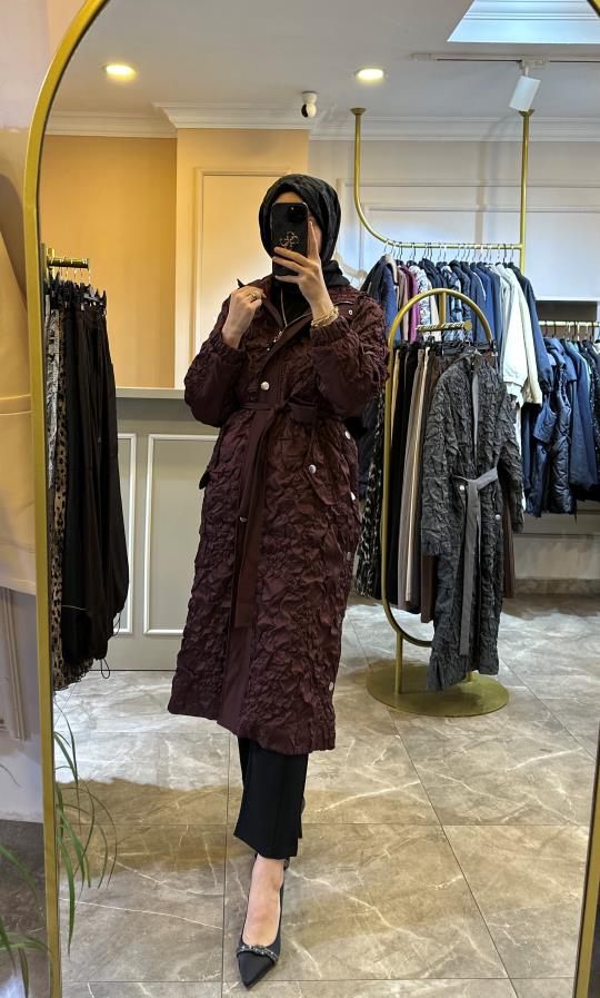 ARKASI KAPİTÖNE DETAYLI BELDEN KEMERLİ TRENÇKOT Bordo