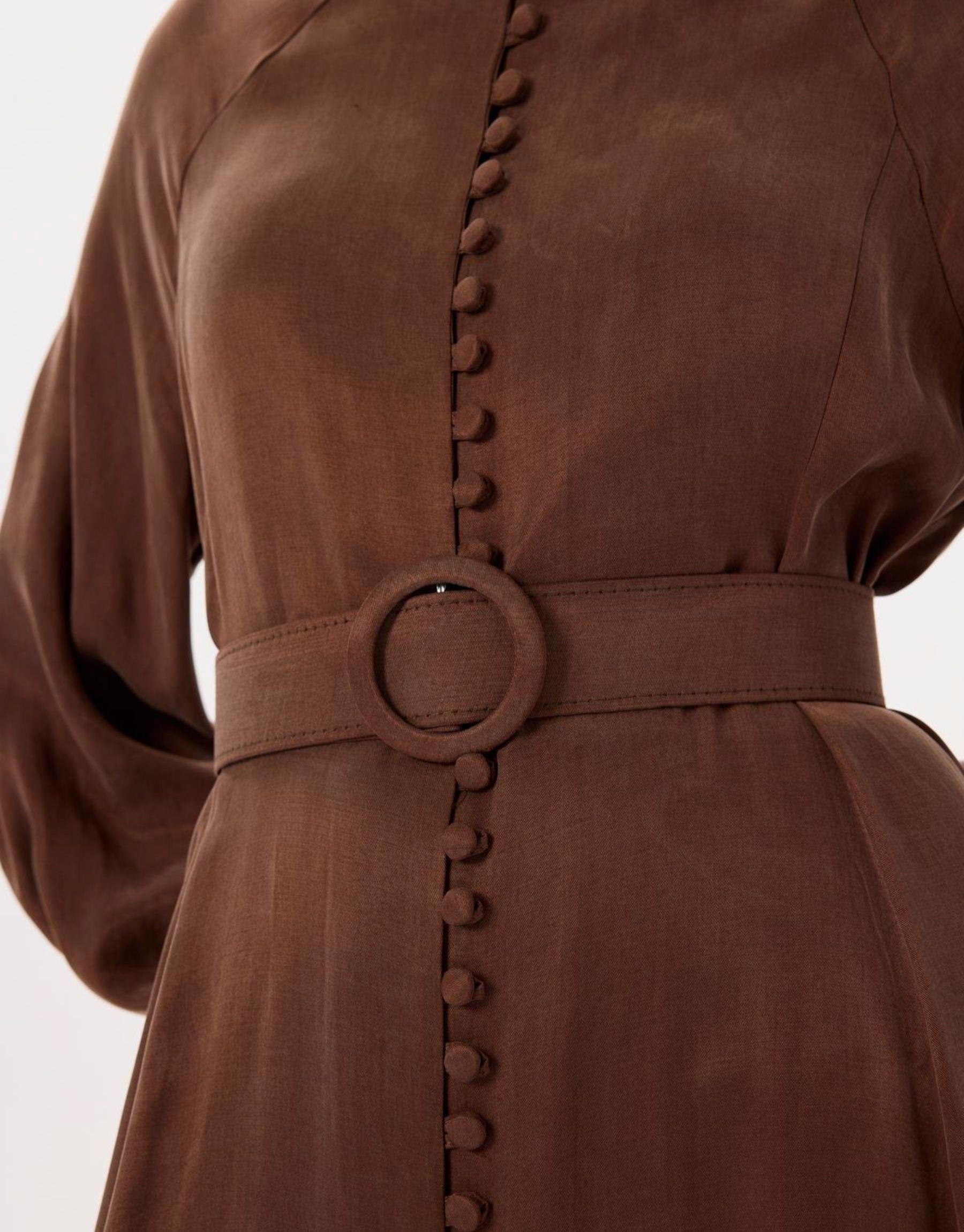 PRİME TAŞLANMIŞ İPEK BRİT DÜĞMELİ ELBİSE | terzi-dukkani