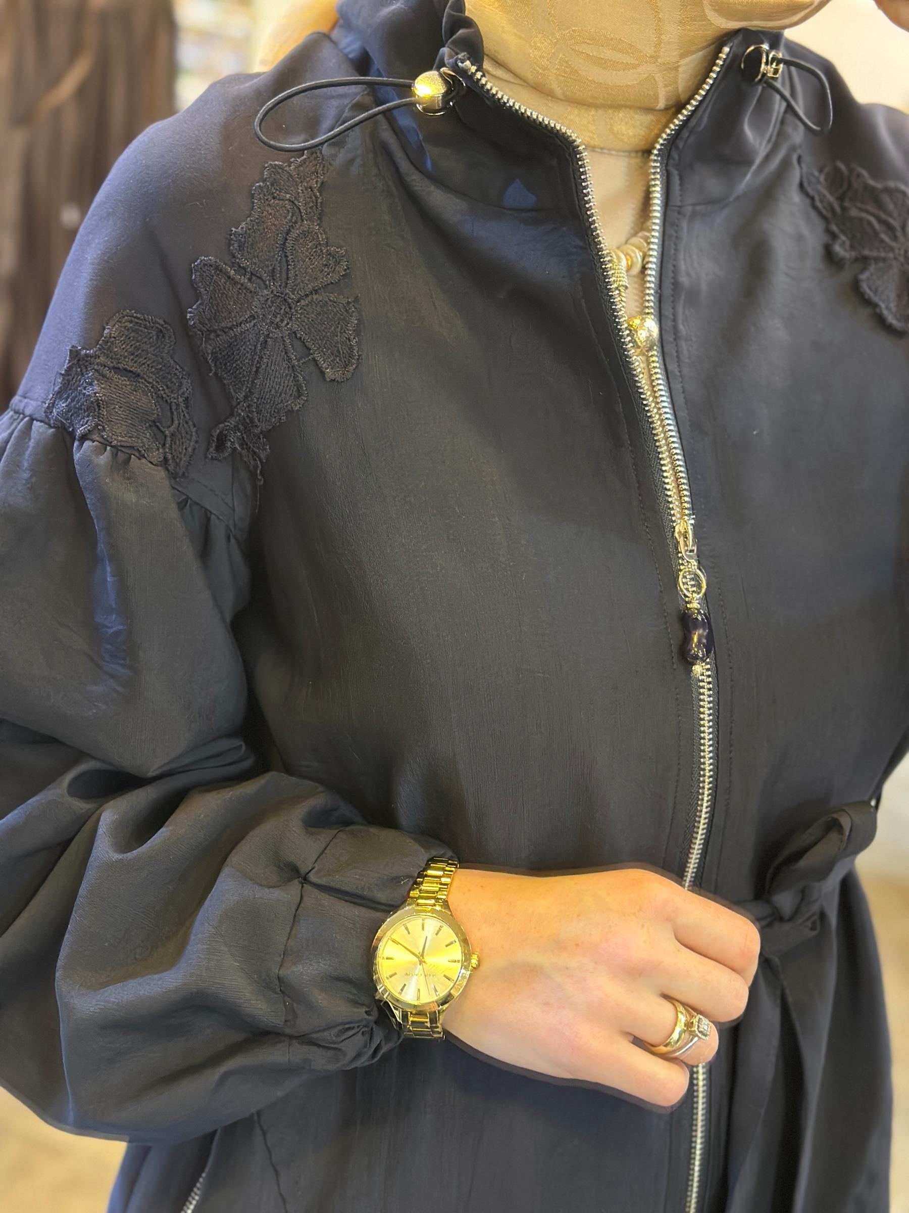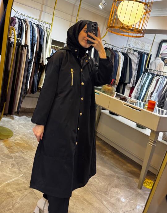 GHİSA Fermuar Detaylı Kapüşonlu Trençkot Siyah