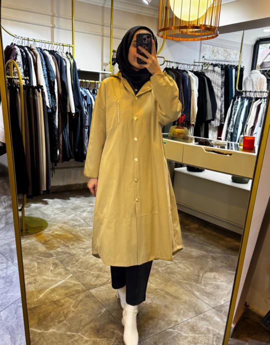 GHİSA Fermuar Detaylı Kapüşonlu Trençkot Camel