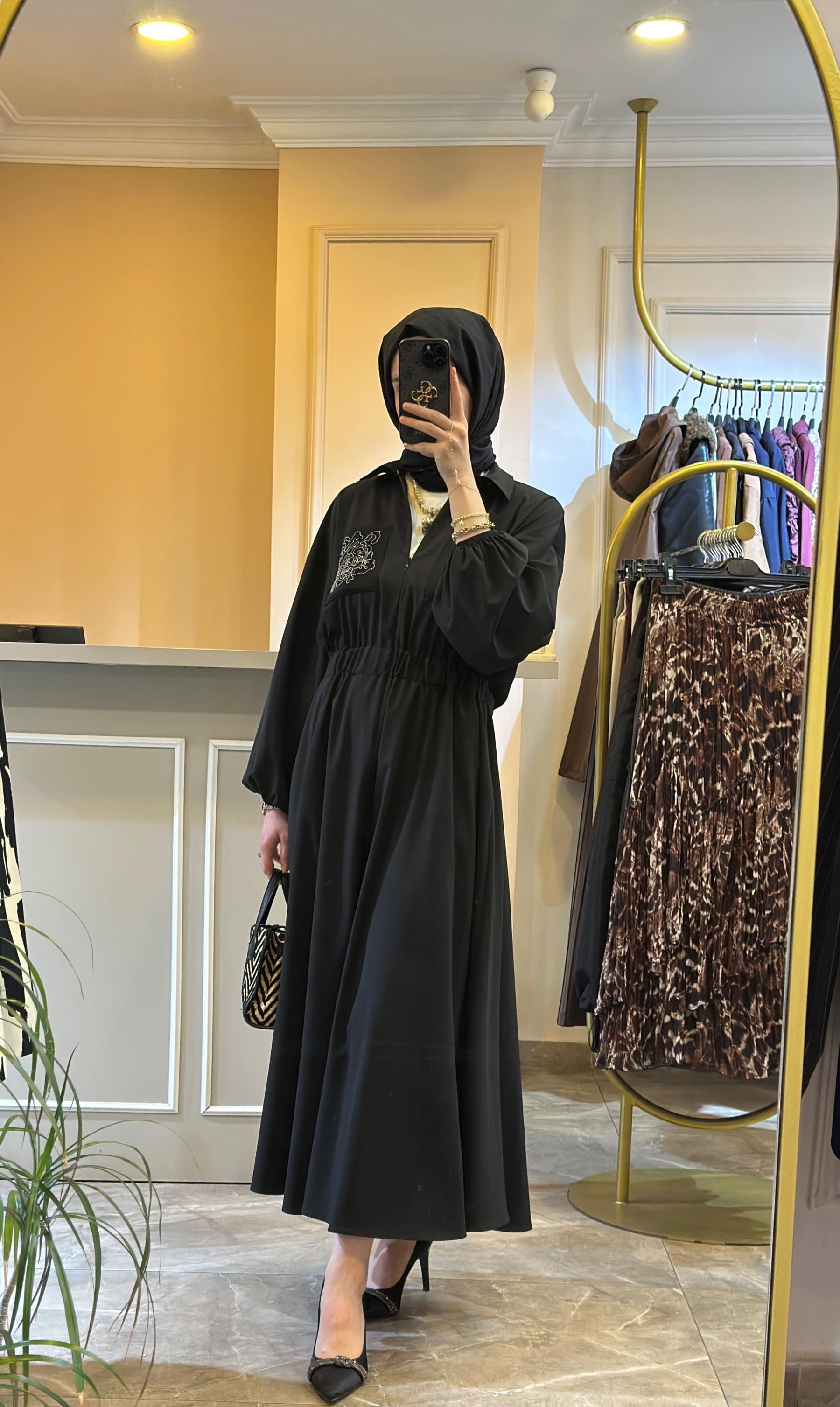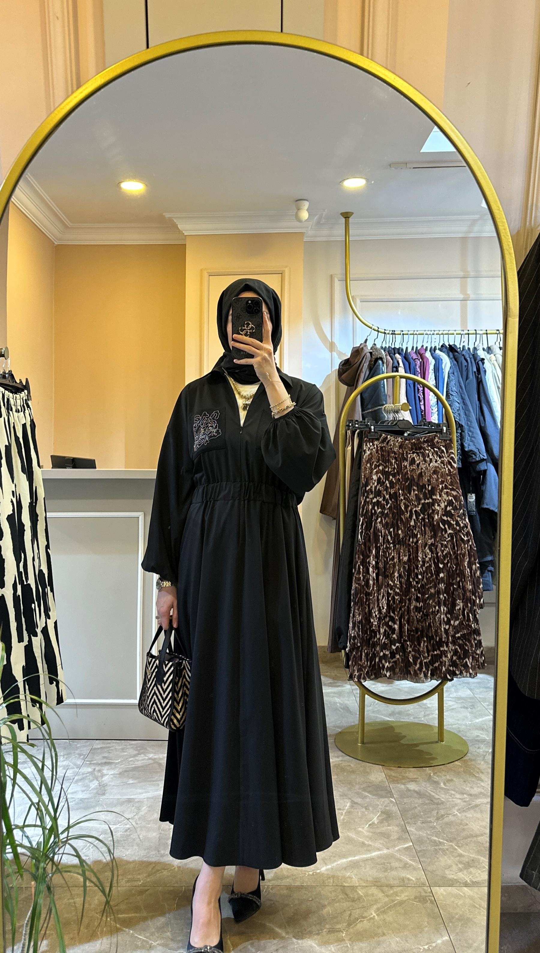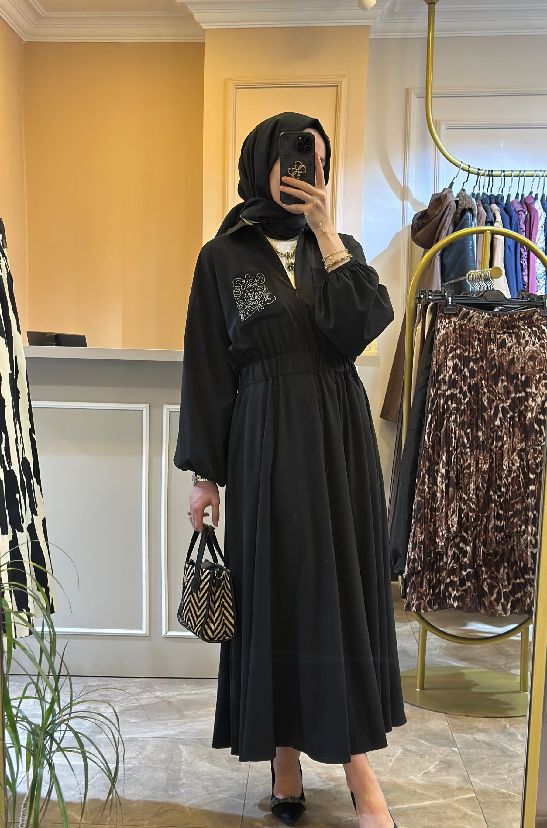 GHİSA Önden Yarım Fermuarlı Cebi İşlemeli Elbise | Ghisa