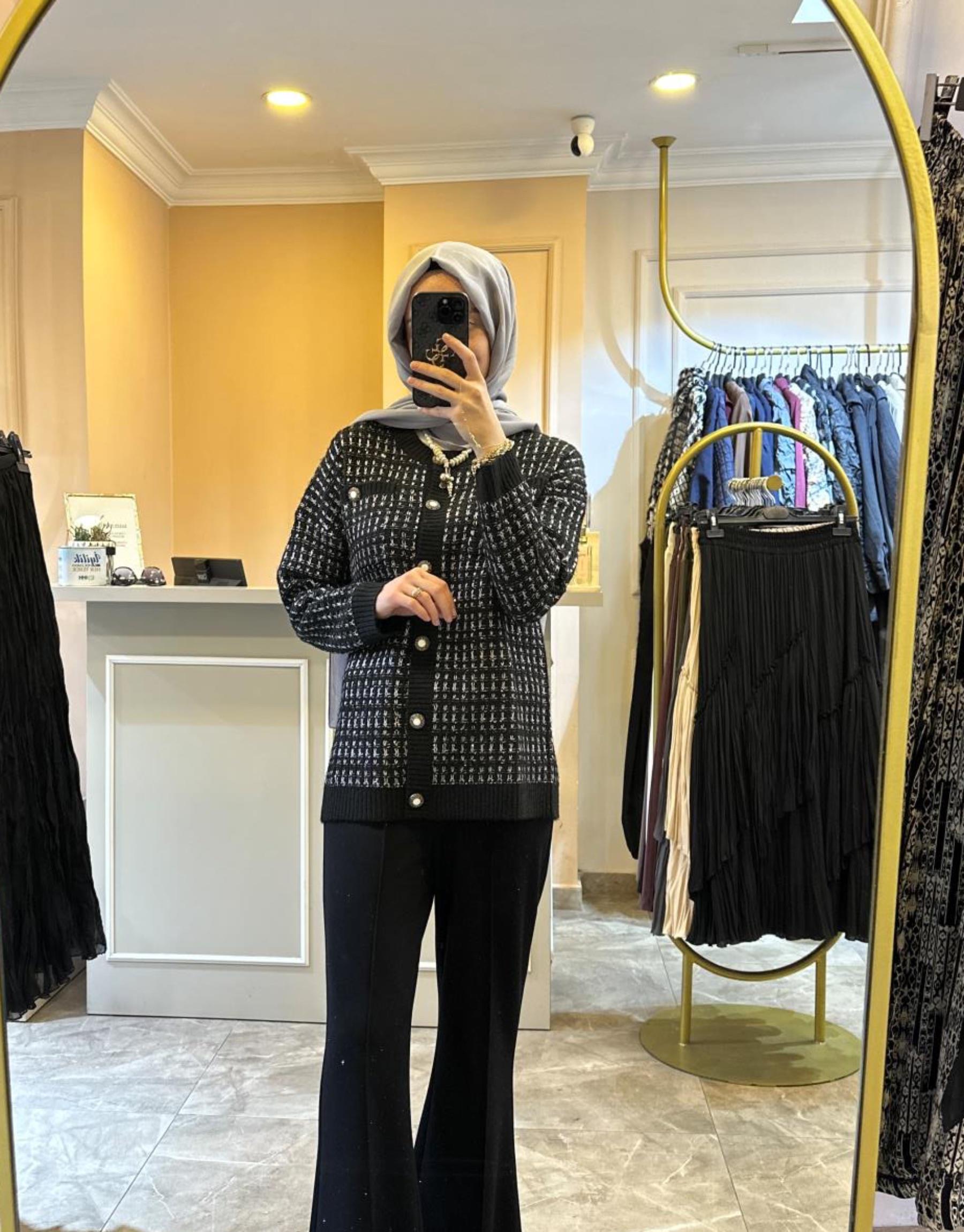 GHİSA Pullu Bisiklet Yaka Gümüş İp Geçişli İthal Triko Hırka | Ghisa