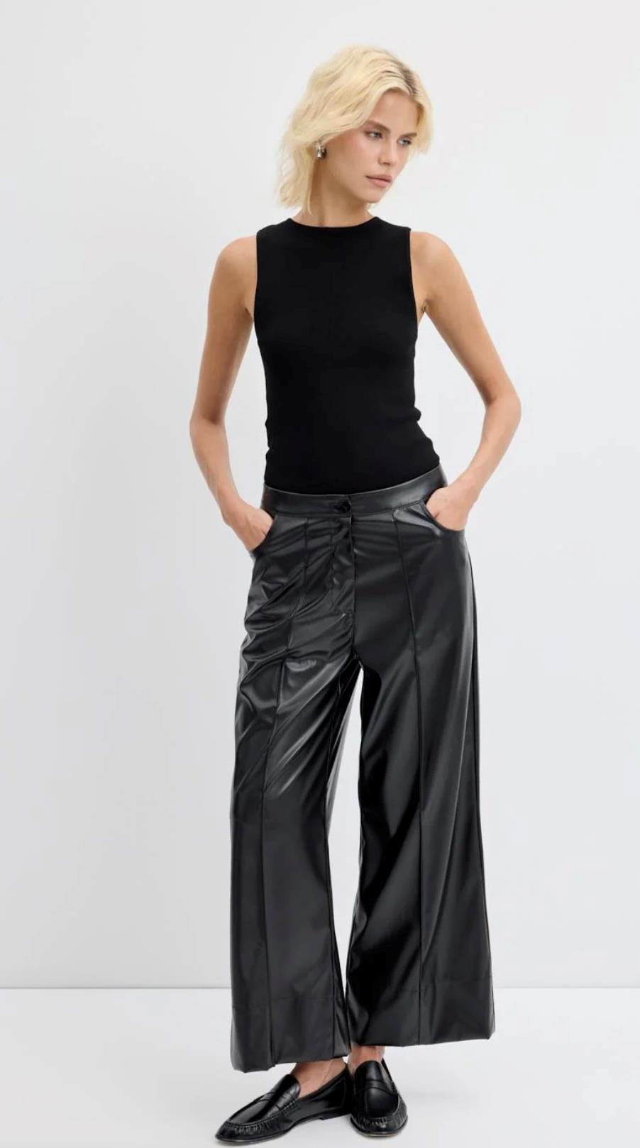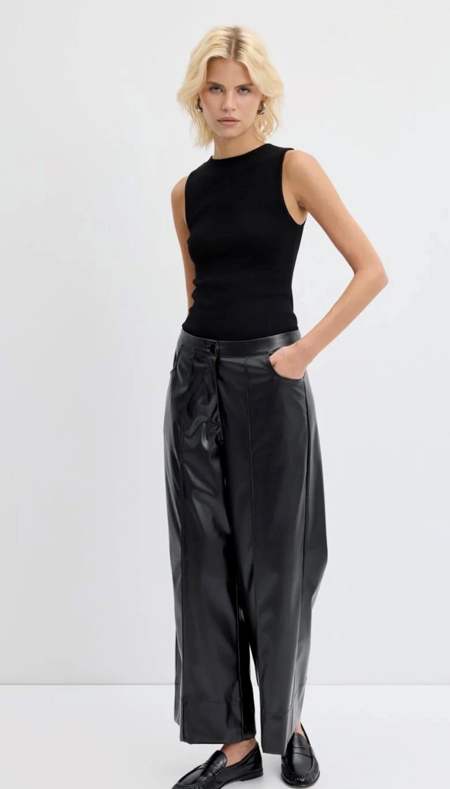 KADRİYE BAŞTÜRK Yüksek Bel Nervür Dikişli Deri Pantolon | Kadriye basturk