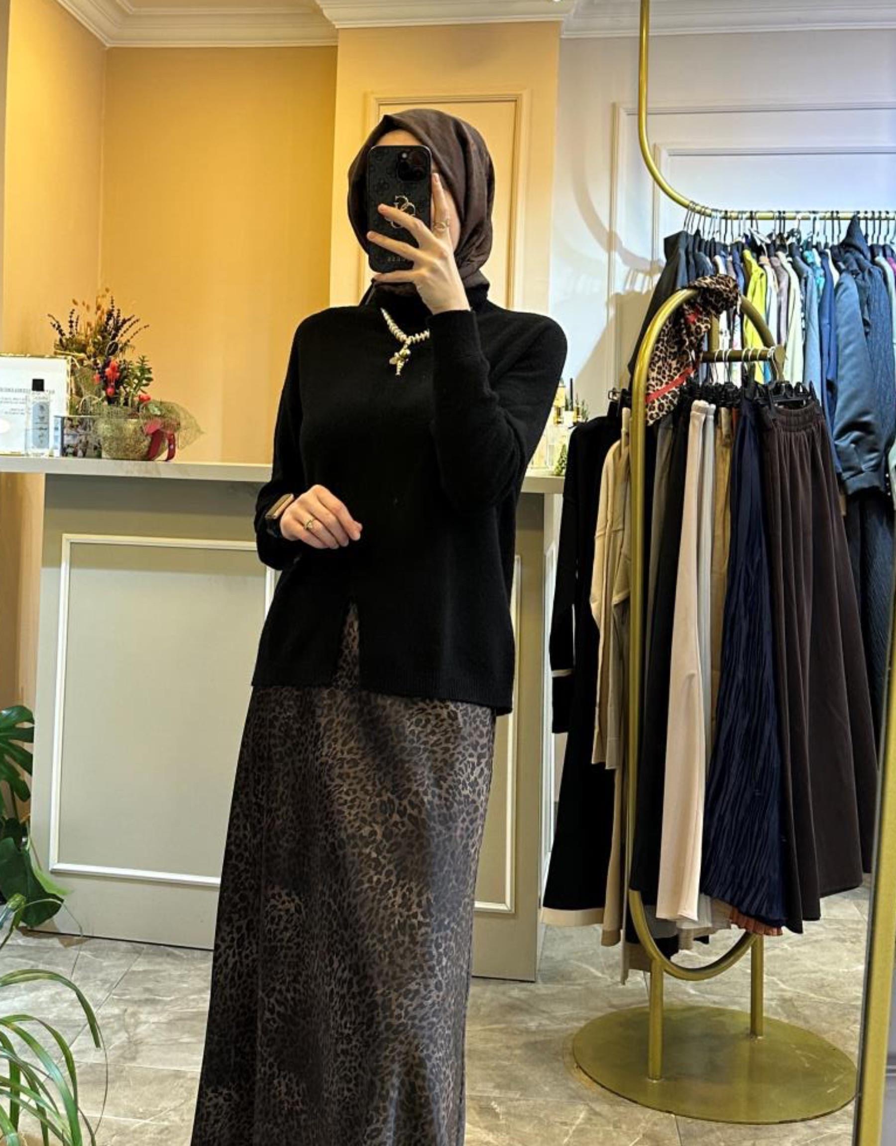 GHİSA LEOPAR DESENLİ TRİKO TUNİK Kahve Leopar