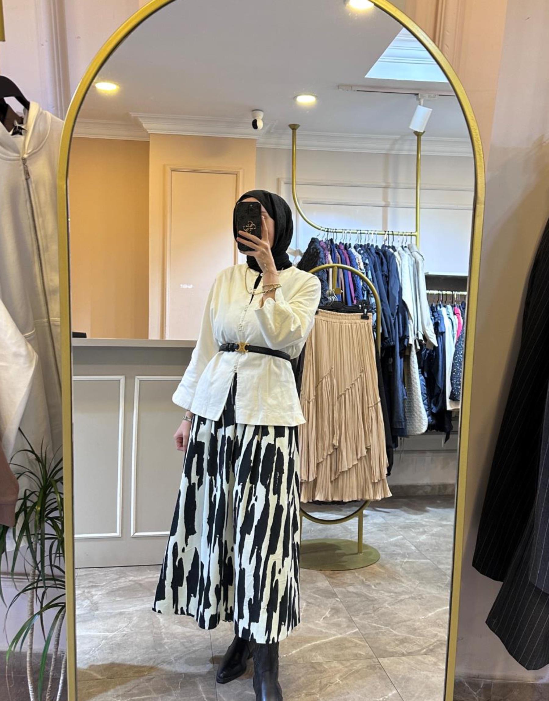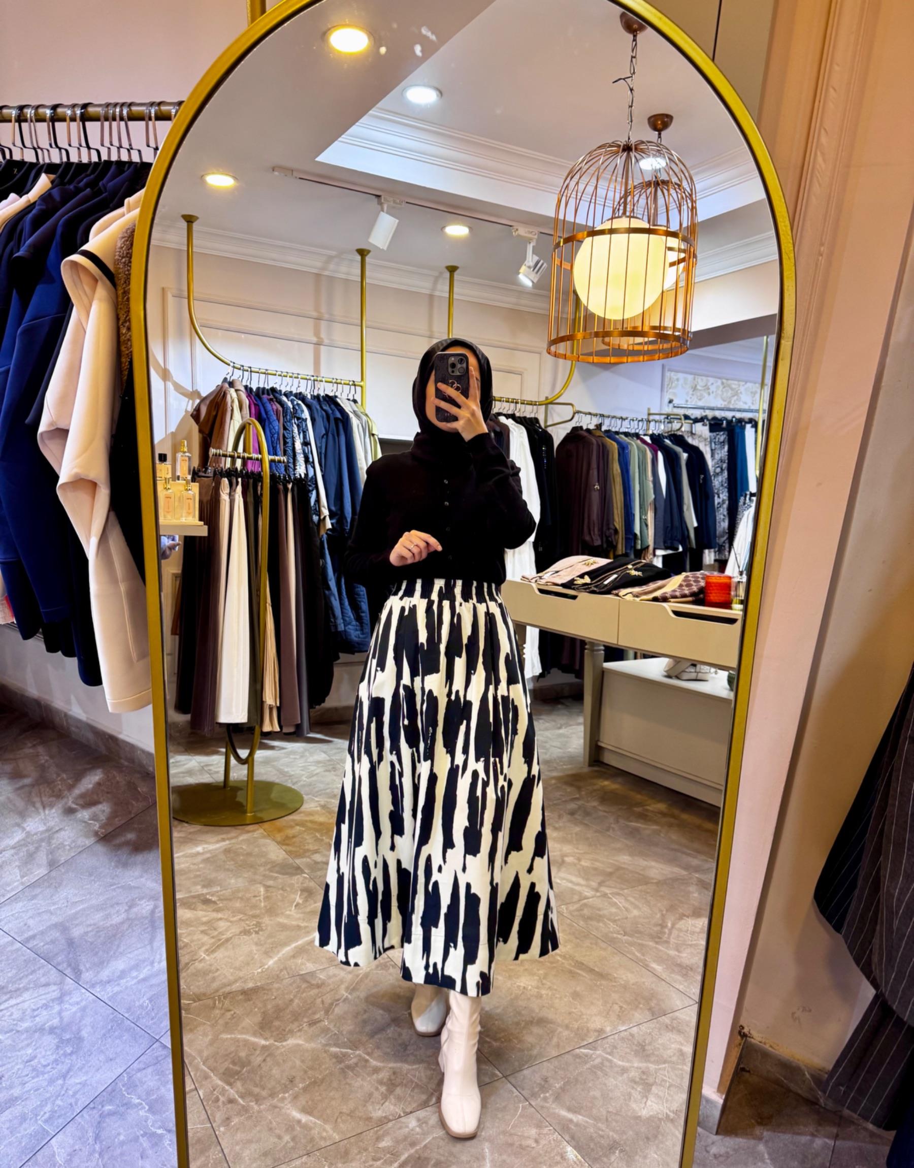 SENTEZ Zebra Desenli Kloş Etek | sentez