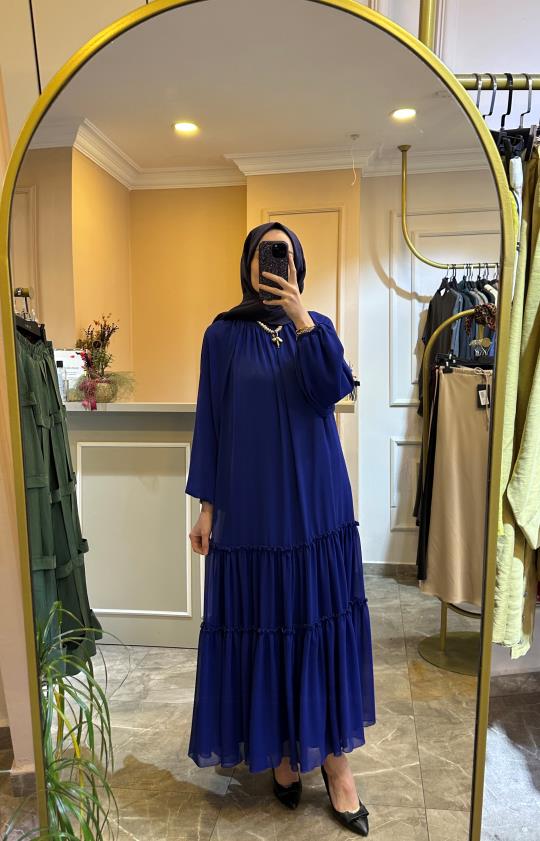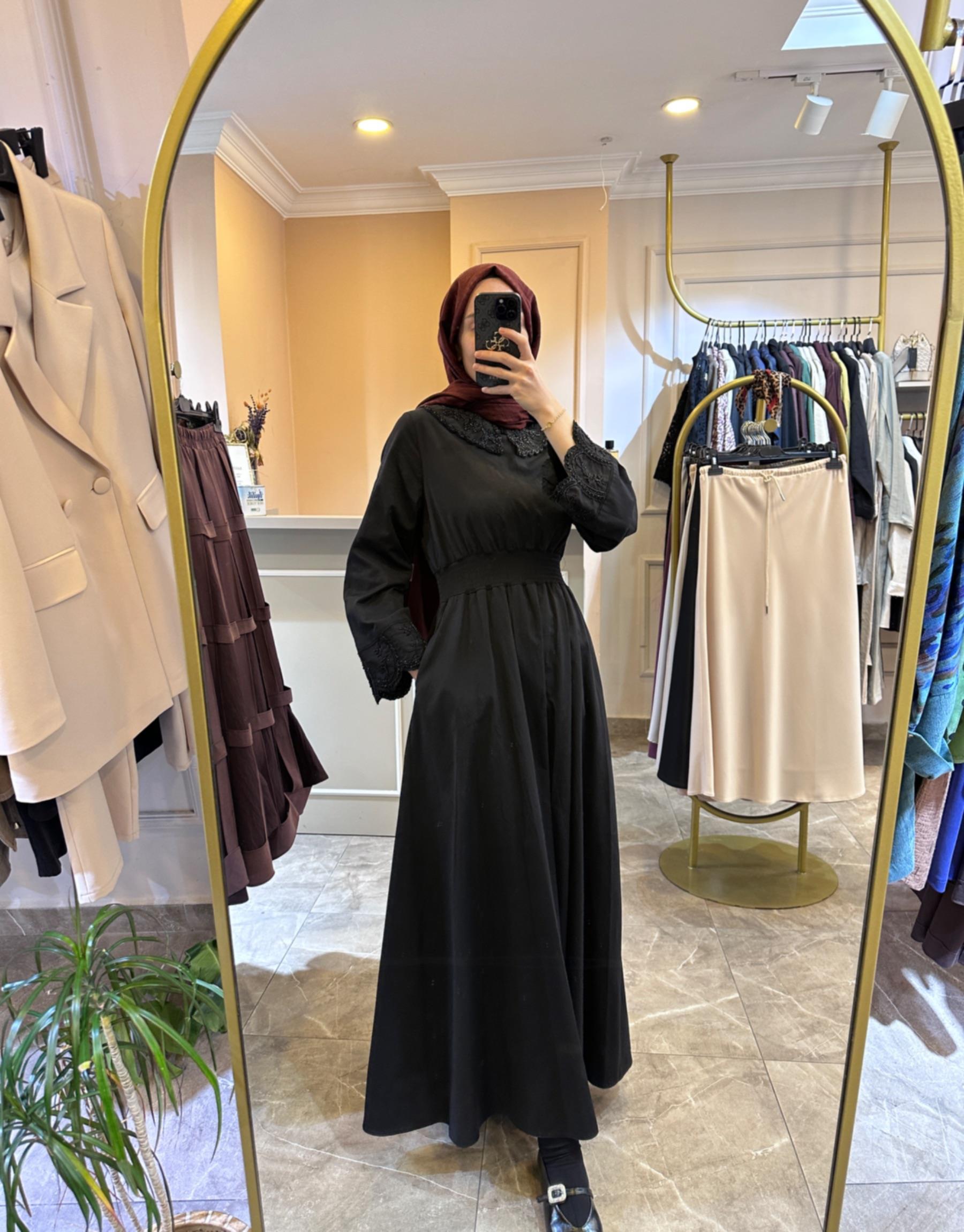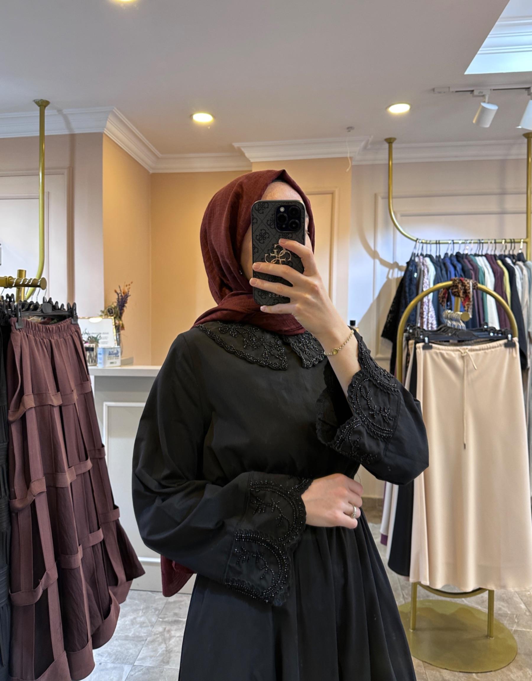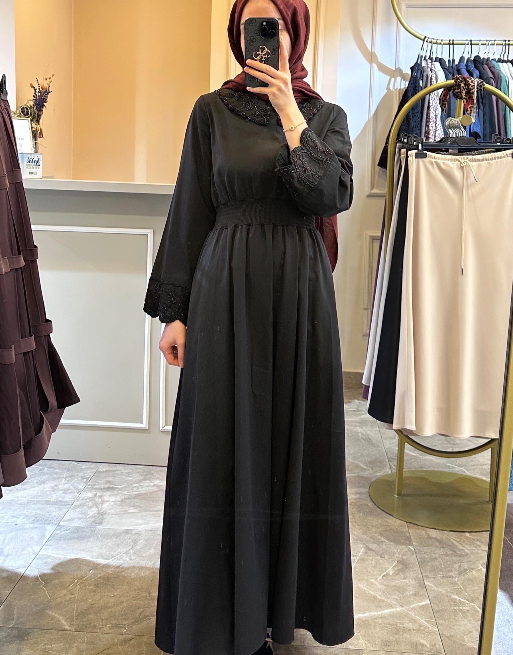 ZEMS Belden Büzgülü Yakası Taş İşlemeli Elbise | Zems