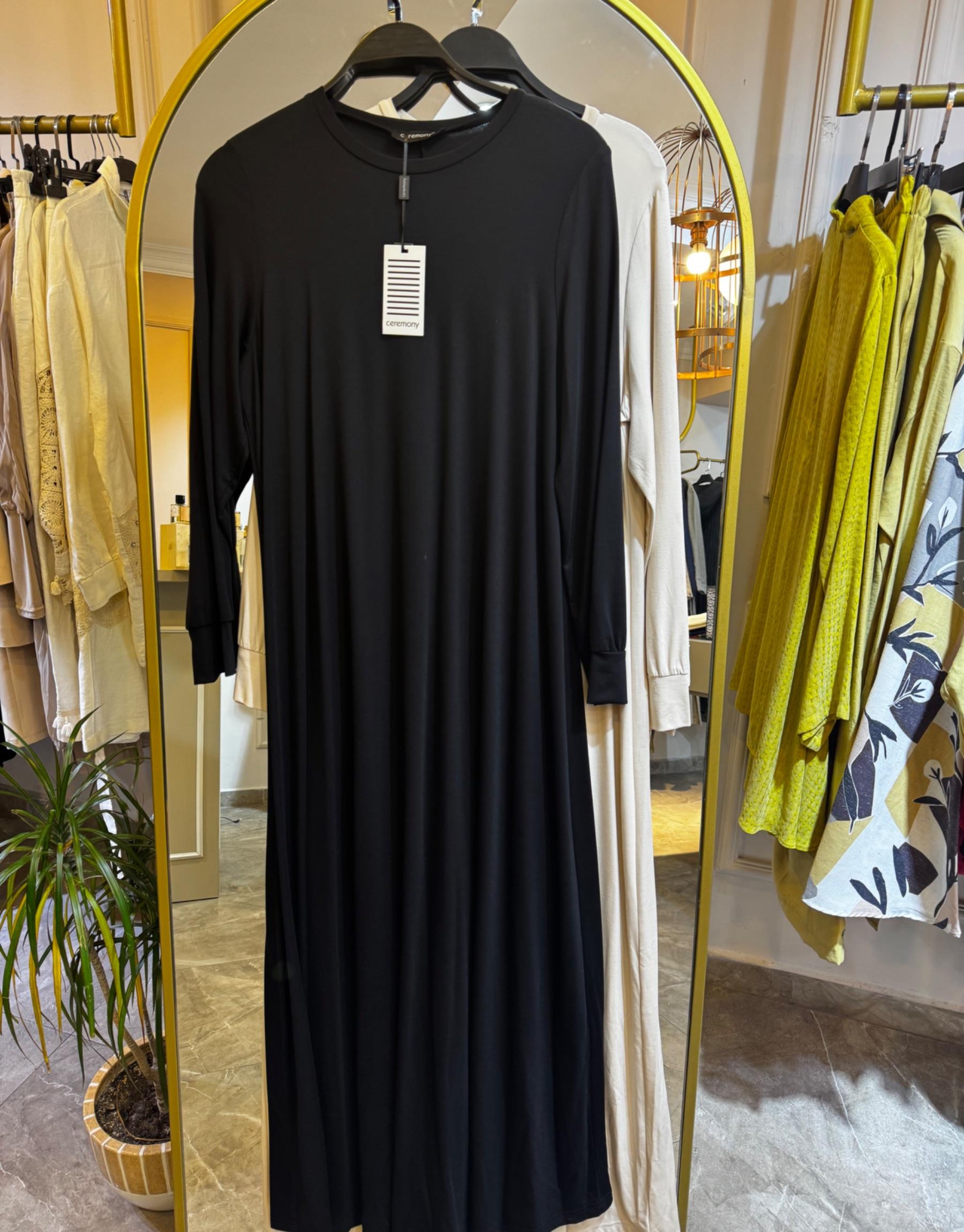 BASIC UZUN KOLLU BAMBU ELBİSE Siyah