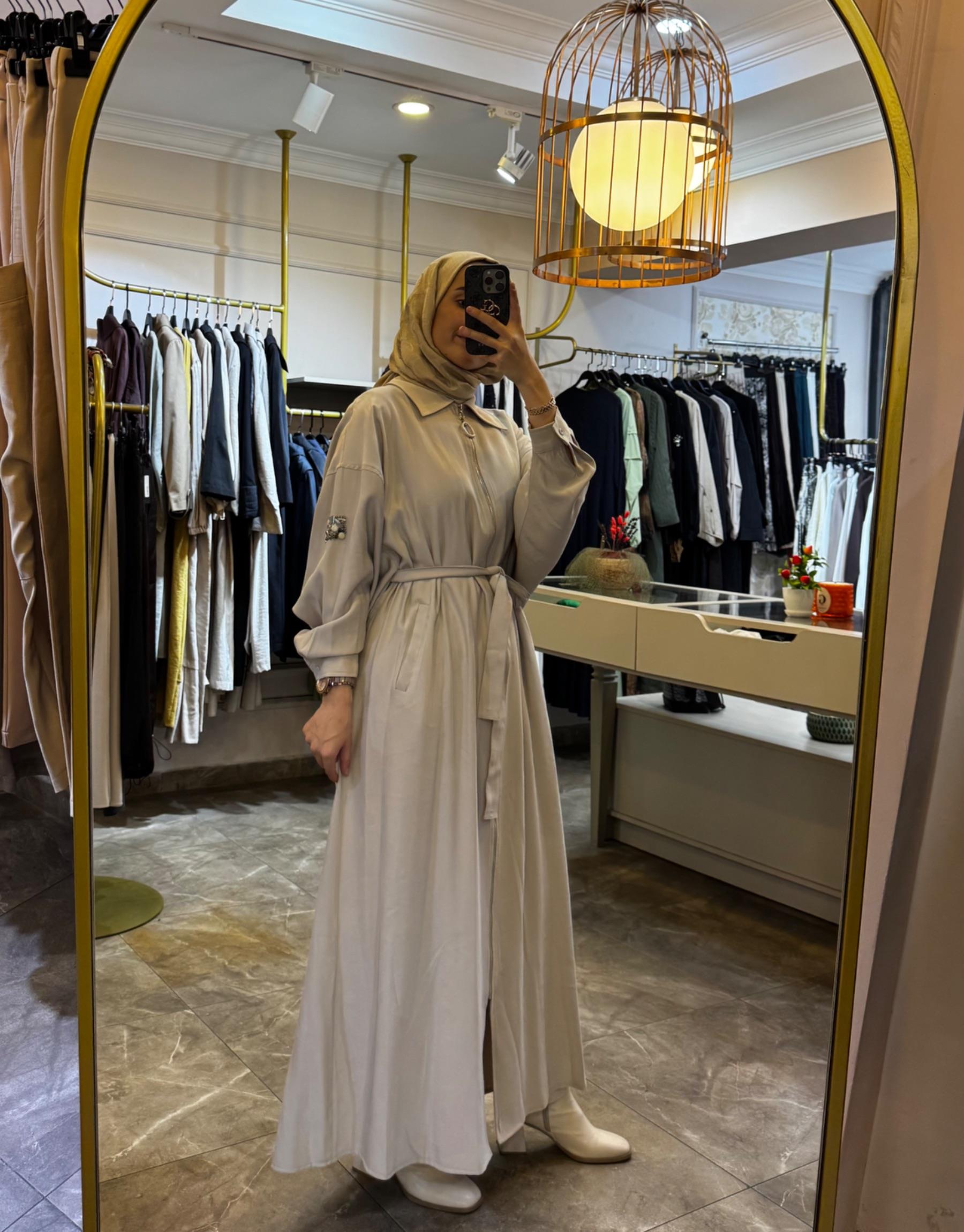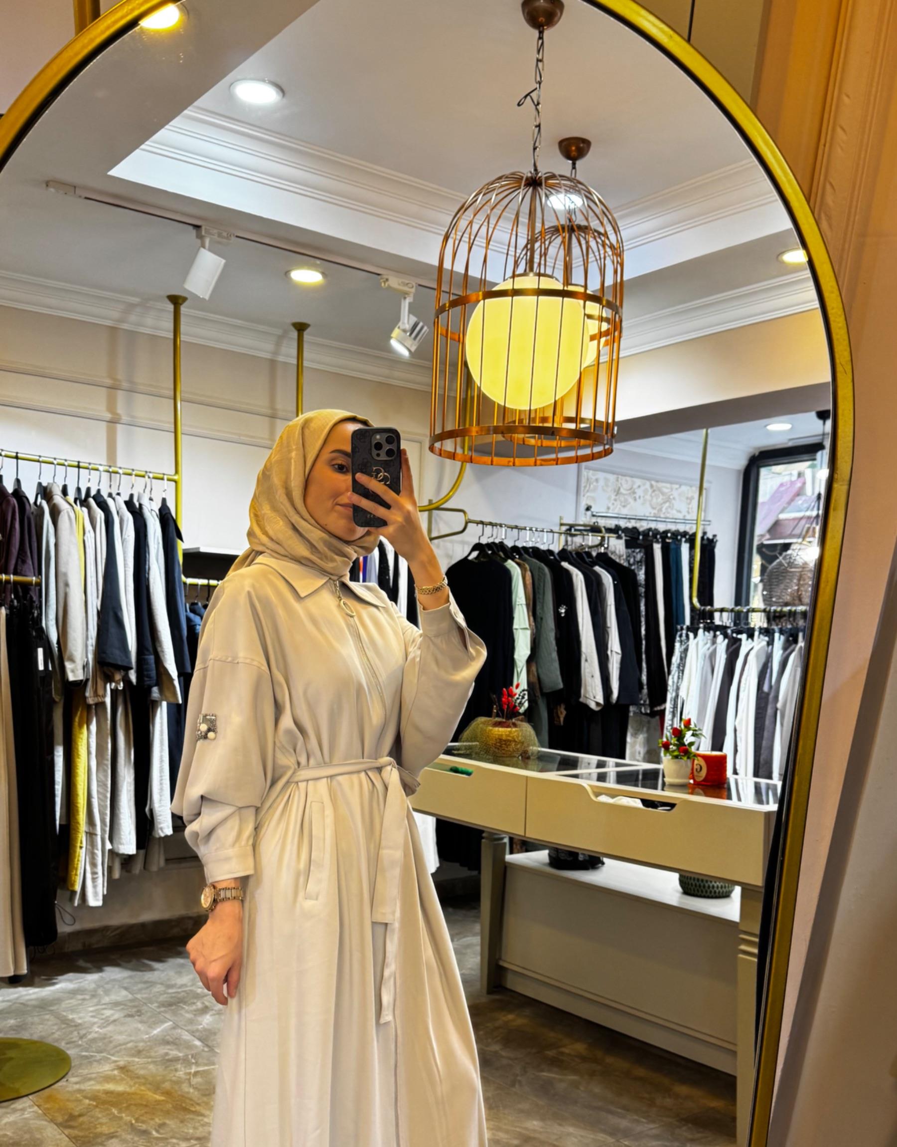 KADRİYE BAŞTÜRK KRUVAZE YAKA APOLET DETAYLI KAŞE KABAN Kahve