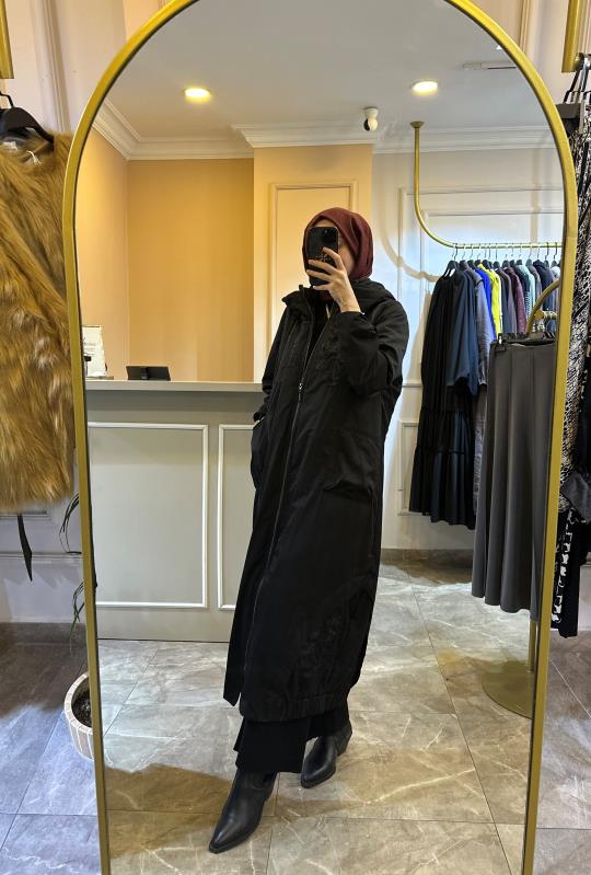 LİSSMORE İçi Kürklü Kapüşonlu Uzun Manto Siyah