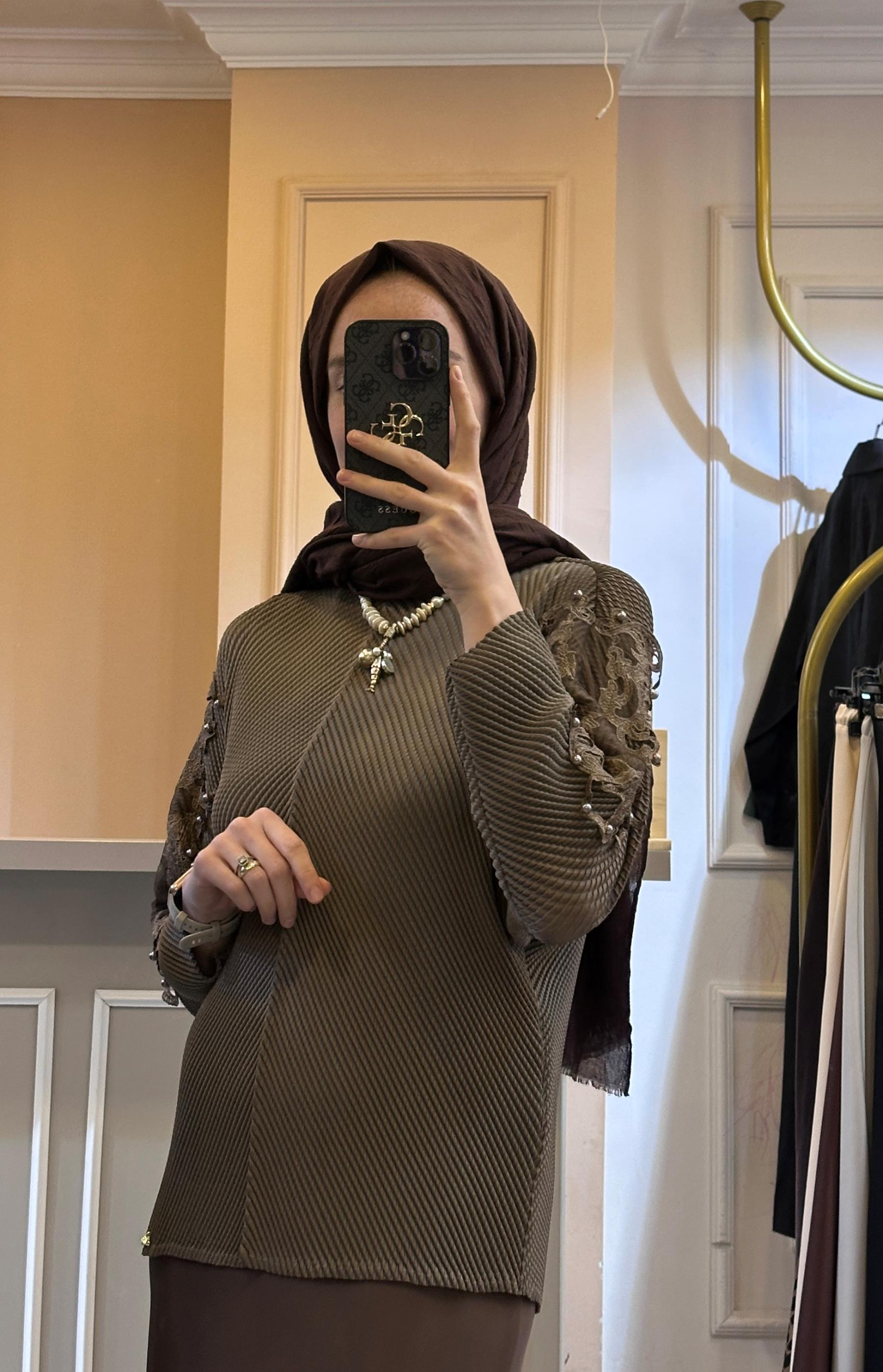 KADRİYE BAŞTÜRK BAKLAVA DESENLİ TRİKO KAZAK Kahve